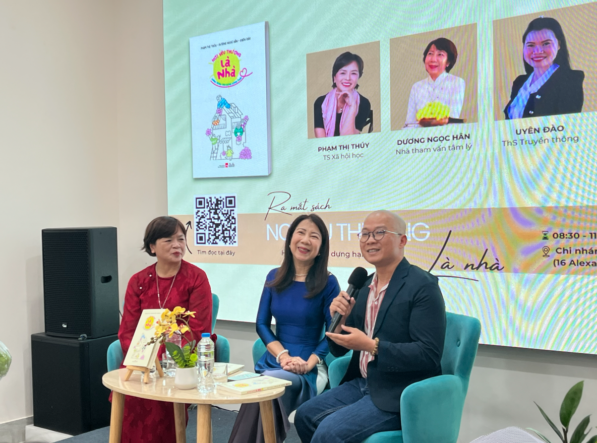 Buổi trò chuyện xoay quanh cuốn sách của hai tác giả - TS Phạm Thị Thúy và chuyên gia tham vấn tâm lý Dương Ngọc Hân - những người nhiều năm làm tham vấn tâm lý, chứng kiến không ít gia đình rạn nứt. Không khí không nặng nề nhưng đủ sâu để mỗi người tự soi lại mình.