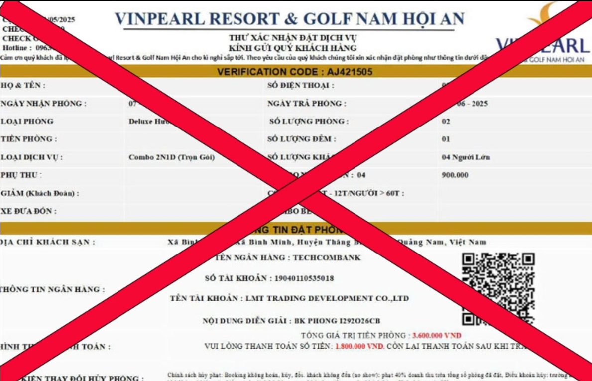 Cục Du lịch Quốc gia Việt Nam đã phát đi cảnh báo về tình trạng gia tăng các hành vi lừa đảo trong mùa du lịch cao điểm, tập trung vào những thủ đoạn như giả mạo fanpage khách sạn, khu nghỉ dưỡng, doanh nghiệp lữ hành; lập website “nhái” giao diện chính thức; gửi đường link giả yêu cầu đăng nhập tài khoản ngân hàng, mạng xã hội hoặc mạo danh nhân viên hỗ trợ để hướng dẫn khách chuyển tiền đặt cọc. Đây đều là những chiêu trò đánh trúng tâm lý muốn chốt nhanh dịch vụ với giá rẻ của nhiều người dân.