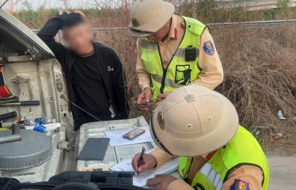 Trước đó, trong quá trình tuần tra, kiểm soát trên cao tốc Phan Thiết - Dầu Giây, đoạn qua tỉnh Lâm Đồng, tổ công tác phát hiện xe ben biển số 75A-384.xx lưu thông trên làn 1 (làn trái, sát dải phân cách).