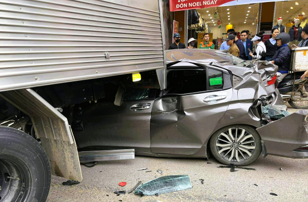 Cú va chạm mạnh khiến xe ô tô con trượt dài, tiếp tục tông vào đuôi xe ô tô tải biển kiểm soát 36H-165.xx đang dừng phía trước. Sau đó, chiếc xe tải này bị đẩy lao lên, tông vào một xe ô tô con màu trắng biển kiểm soát 36K-227.xx rồi quay ngang đường, va chạm với một xe ô tô VinFast đang dừng chờ đèn đỏ ở làn bên cạnh.