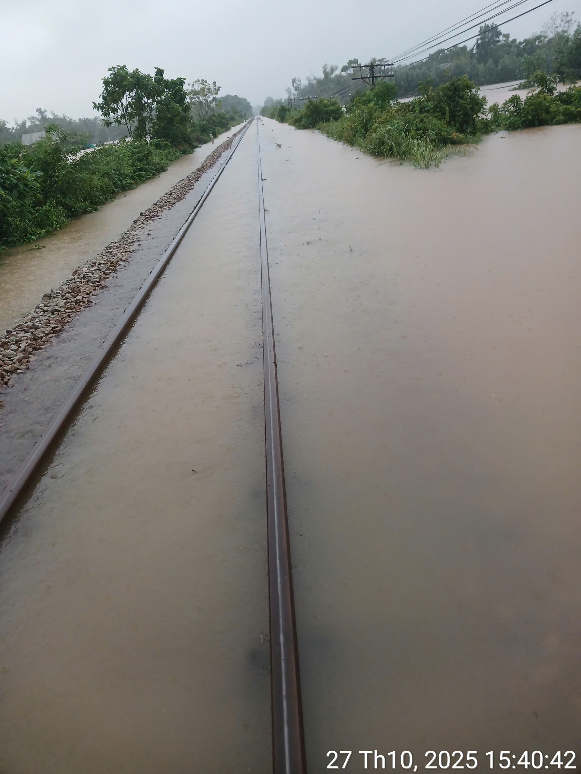 Nguyên nhân là do tình hình lũ lụt ở miền Trung nên tại Km682+550 - 682+700 nước trên đỉnh ray 70mm; Km683+200 - 683+650 nước trên đỉnh ray 185 mm. Nước đang lên và đã chạm đáy dầm cầu Bạch Hổ, Giả Viên (TP Huế). Ngành đường sắt cho biết sẽ tiếp tục theo dõi tình hình lũ lụt để có kế hoạch tiếp theo.