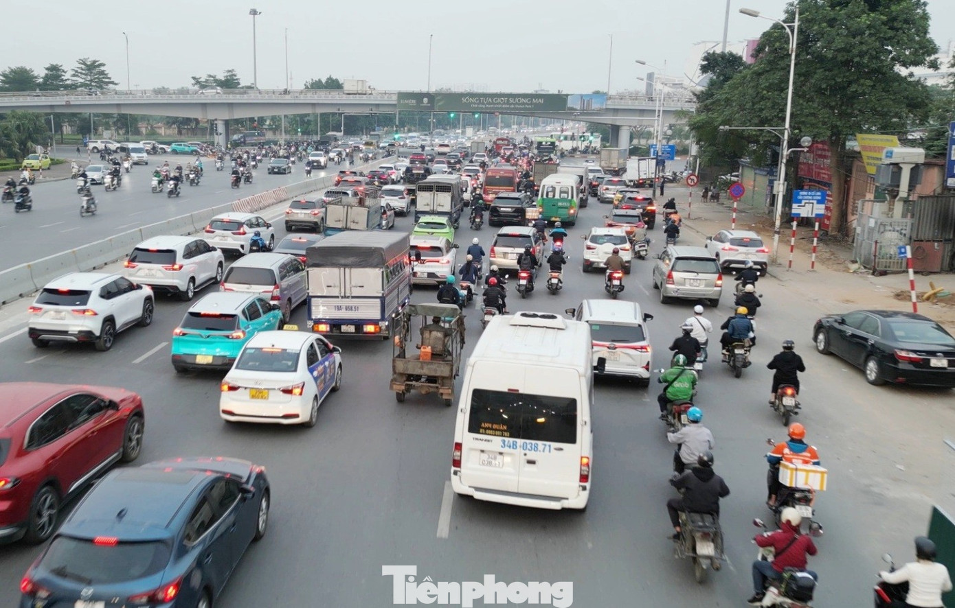 Chiều 15/12, ùn tắc tại nút giao Cổ Linh kéo dài lên đến cầu Vĩnh Tuy.