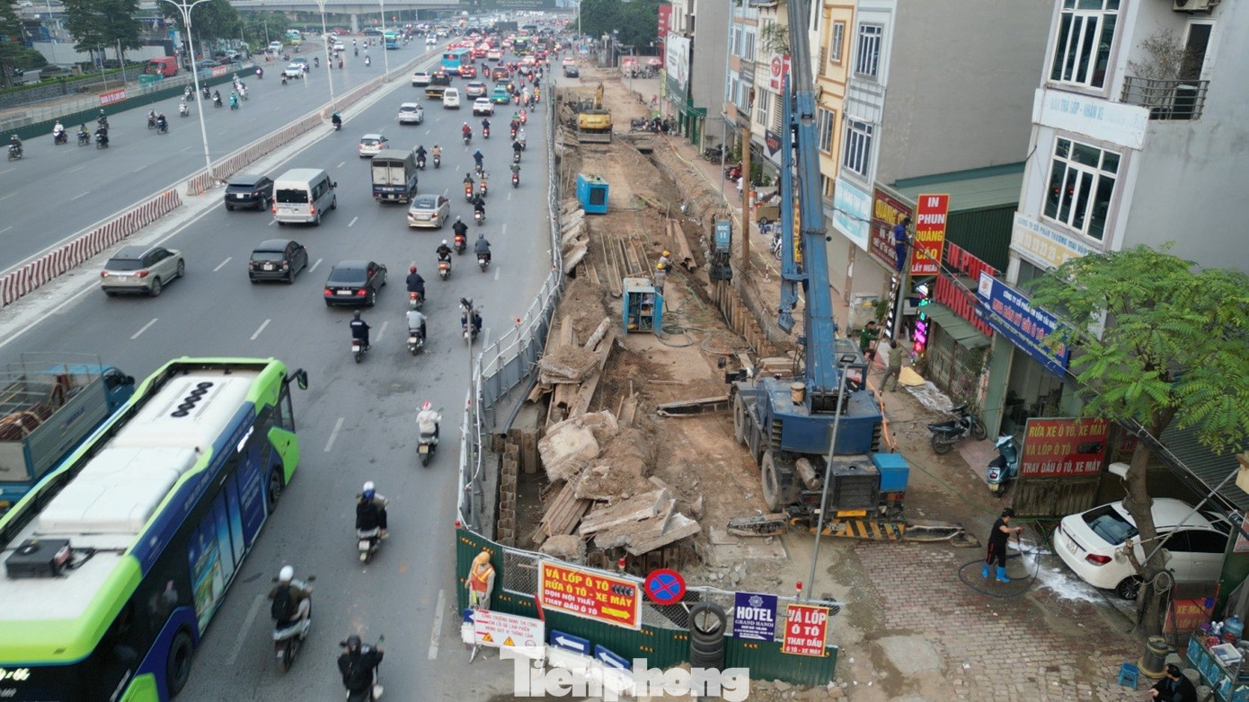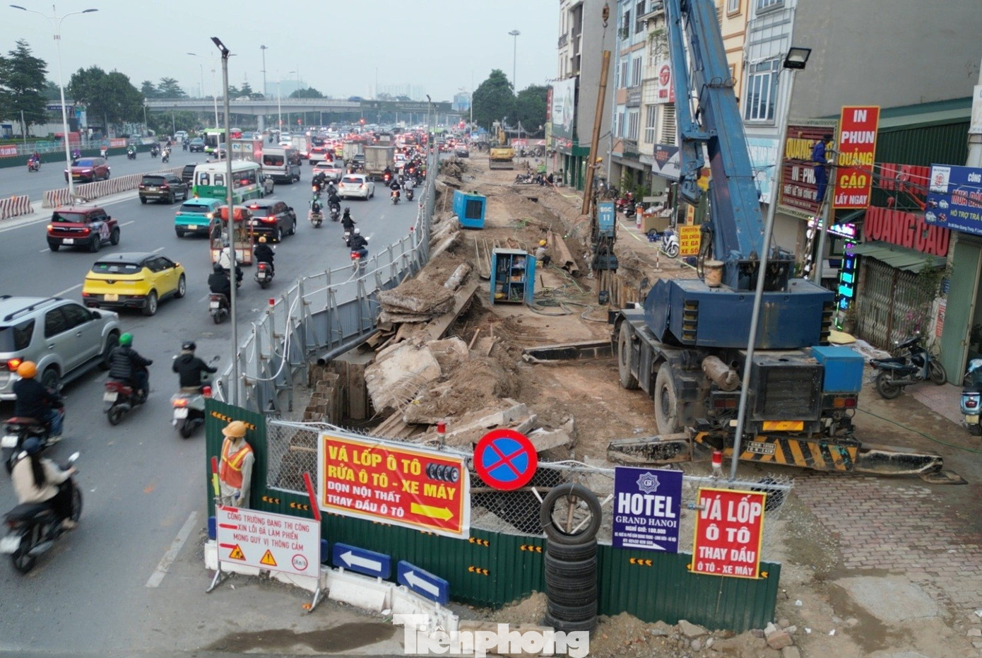 Để giải quyết tình trạng ùn tắc, hiện công trình hầm chui theo hướng cầu Vĩnh Tuy - QL5 đang được các nhà thầu dựng hàng rào trên đường để thi công.