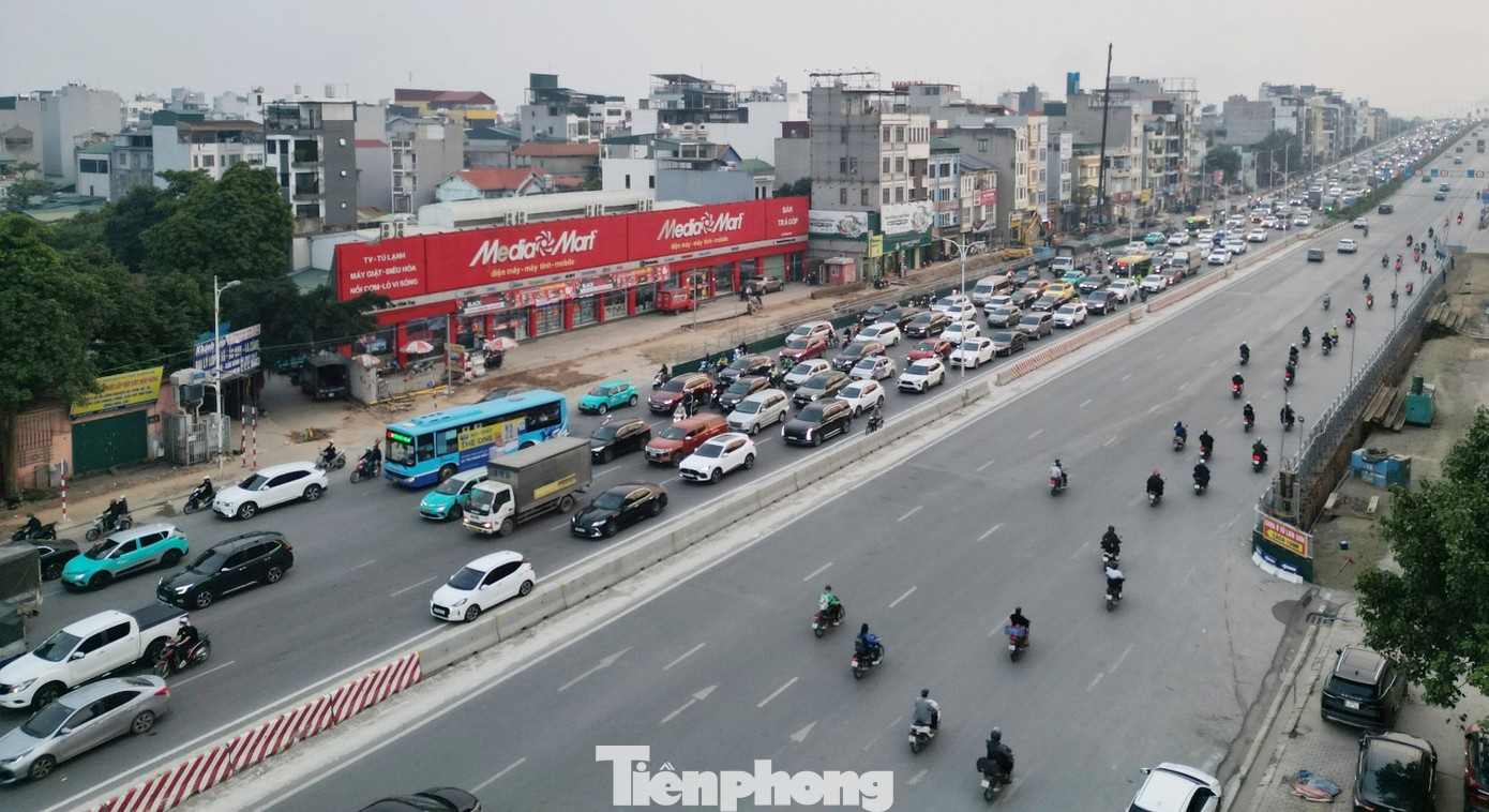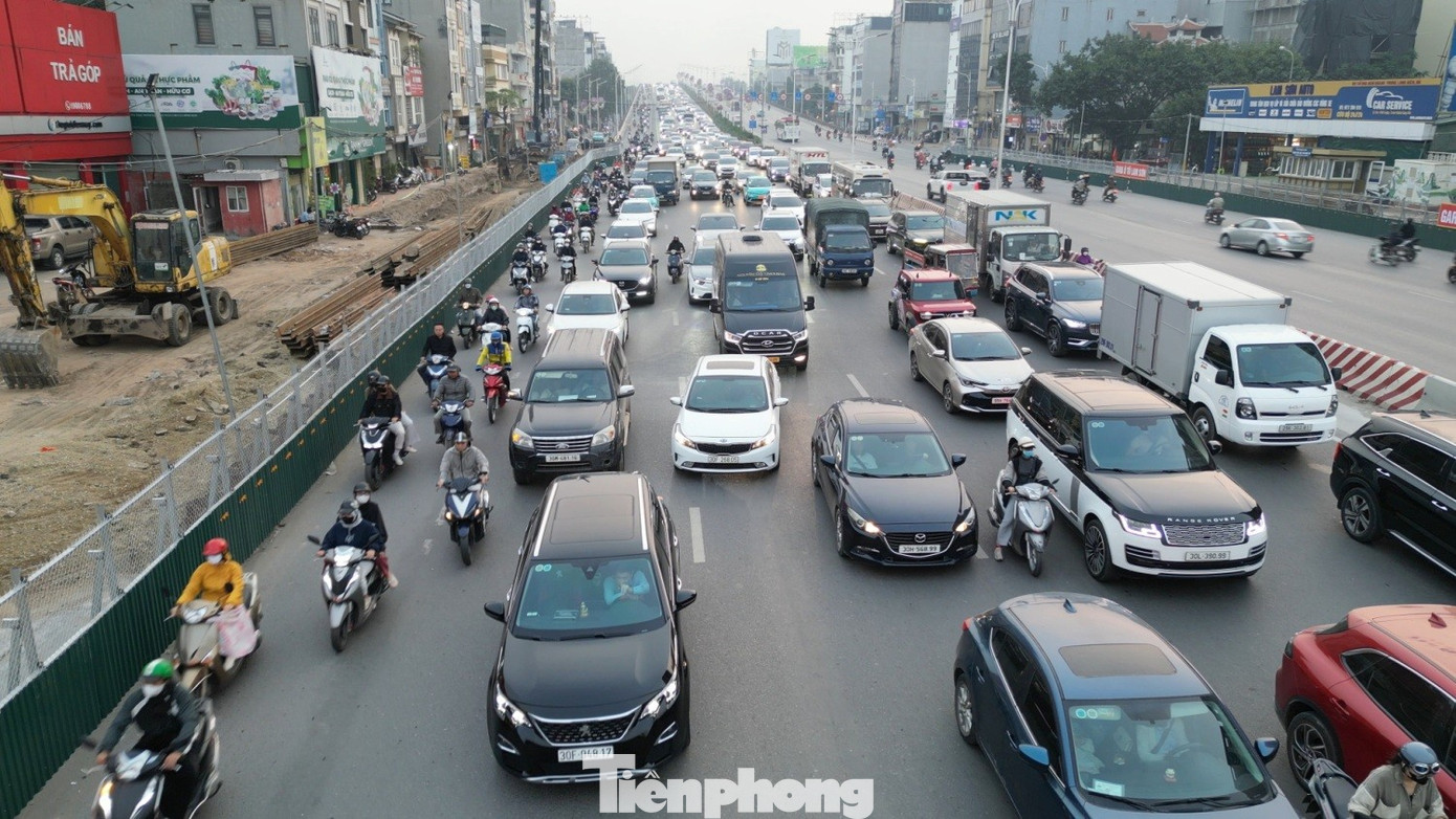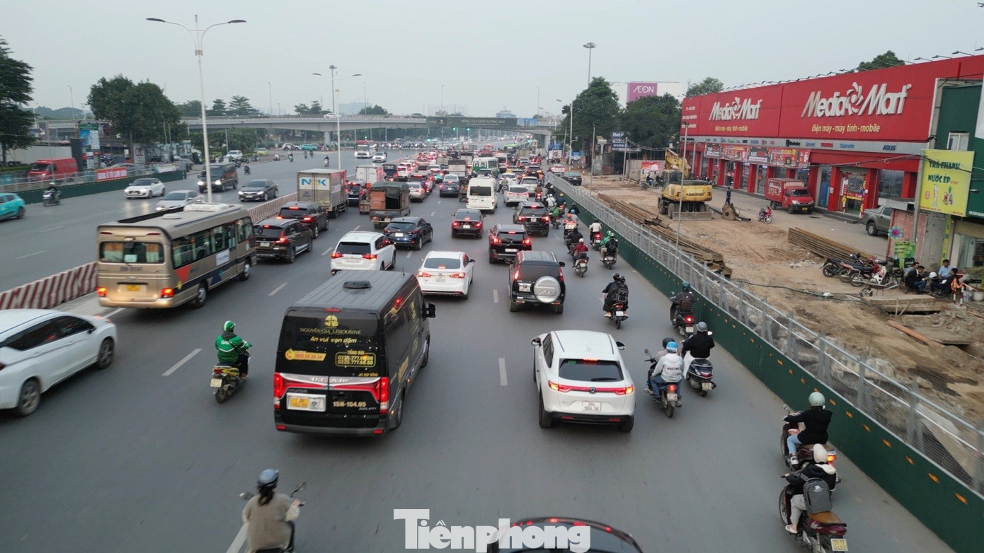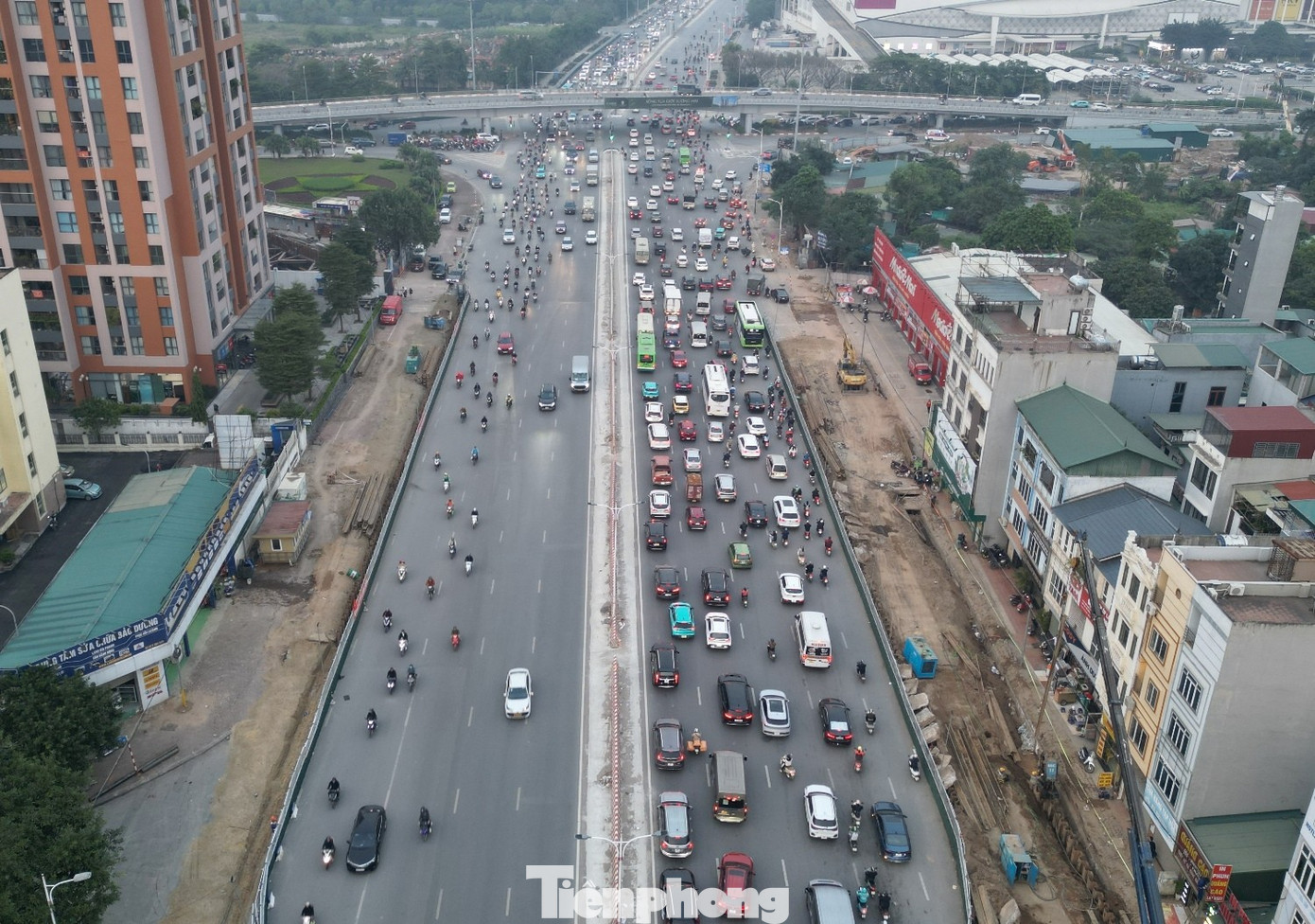 Do lưu lượng phương tiện đông và lòng đường lại bị hàng rào thi công chiếm dụng, dẫn đến giao thông ở nút Cổ Linh những ngày qua càng ùn tắc càng kéo dài hơn.