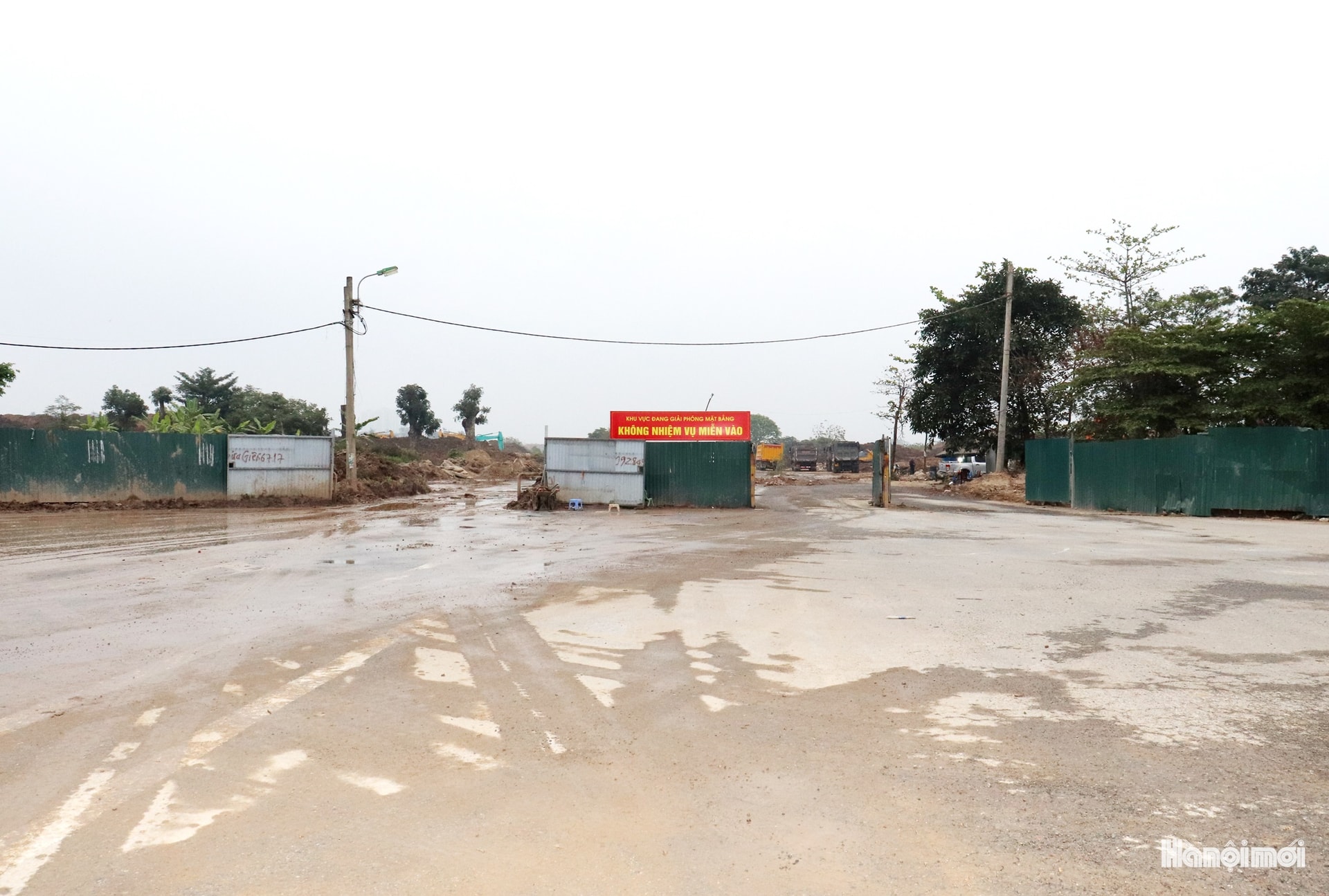 Sáng 17-3, tại cổng chính khu vực ra vào bãi tập kết tạm của dự án không còn xe tải ra vào vận chuyển đất như những ngày trước, sau khi tình trạng xe chở đất gây rơi vãi bùn đất ra đường được phản ánh. Ảnh: Tuấn Điệp