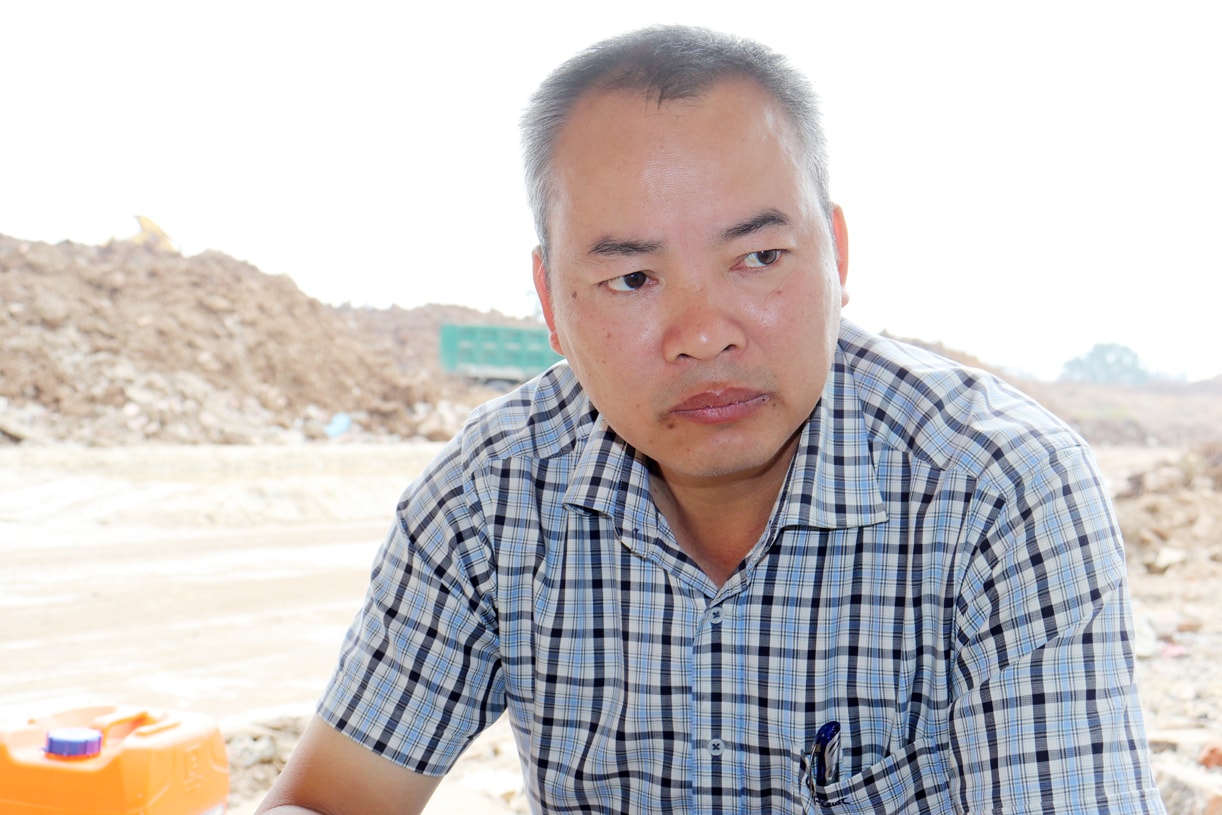 Ông Nguyễn Tuấn Khải đại diện đơn vị vận chuyển Công ty Hoàn Mỹ cam kết dừng toàn bộ việc vận chuyển đất vào bãi tạm Dự án Công viên văn hóa - vui chơi giải trí, thể thao Hà Đông (phường Kiến Hưng). Ảnh: Tuấn Điệp
