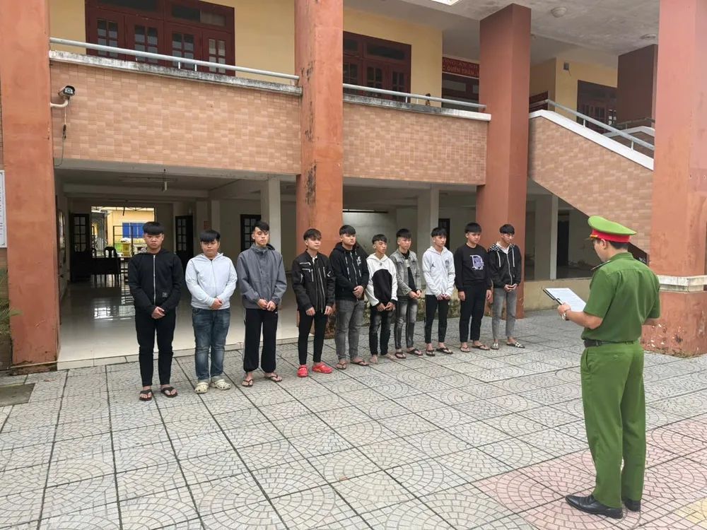 10 thanh niên tại cơ quan công an. Ảnh: CA
