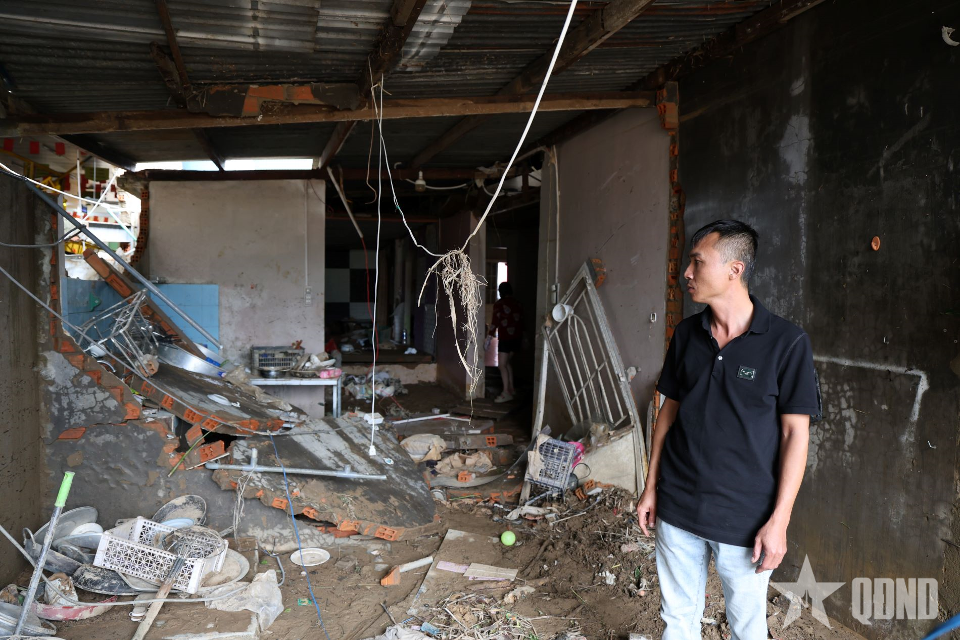 Anh Đỗ Bảo Nguyên trong căn nhà của gia đình khi vừa trải qua cơn lũ.