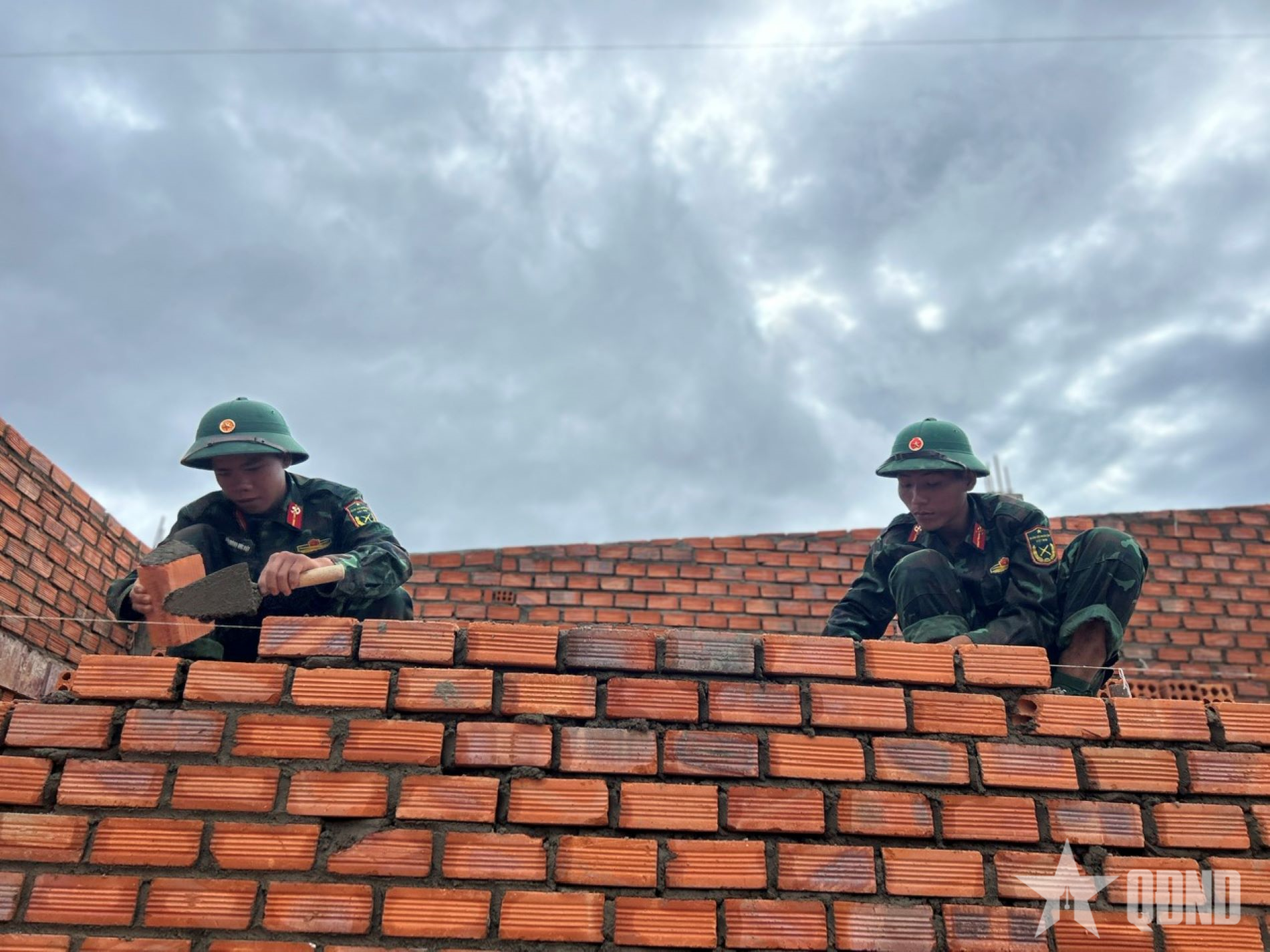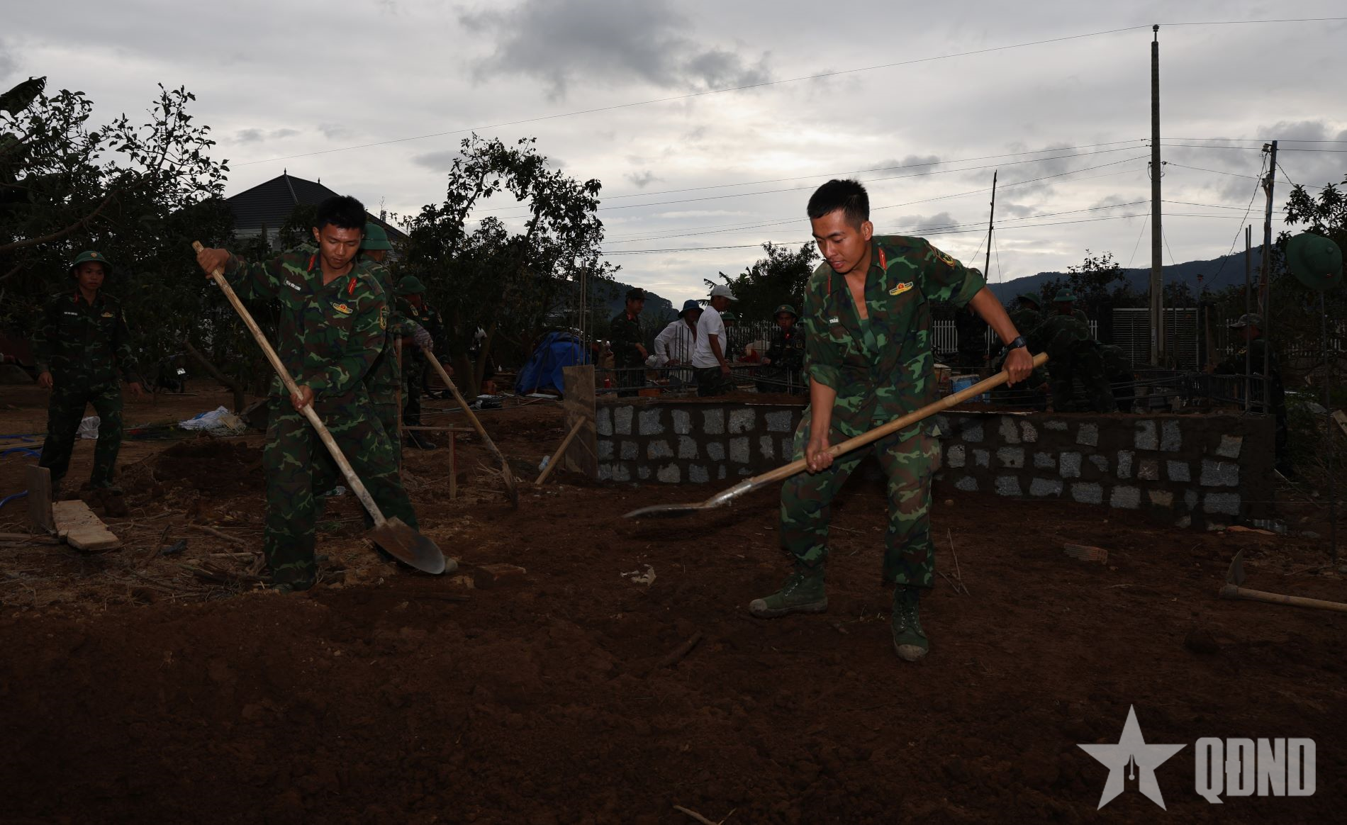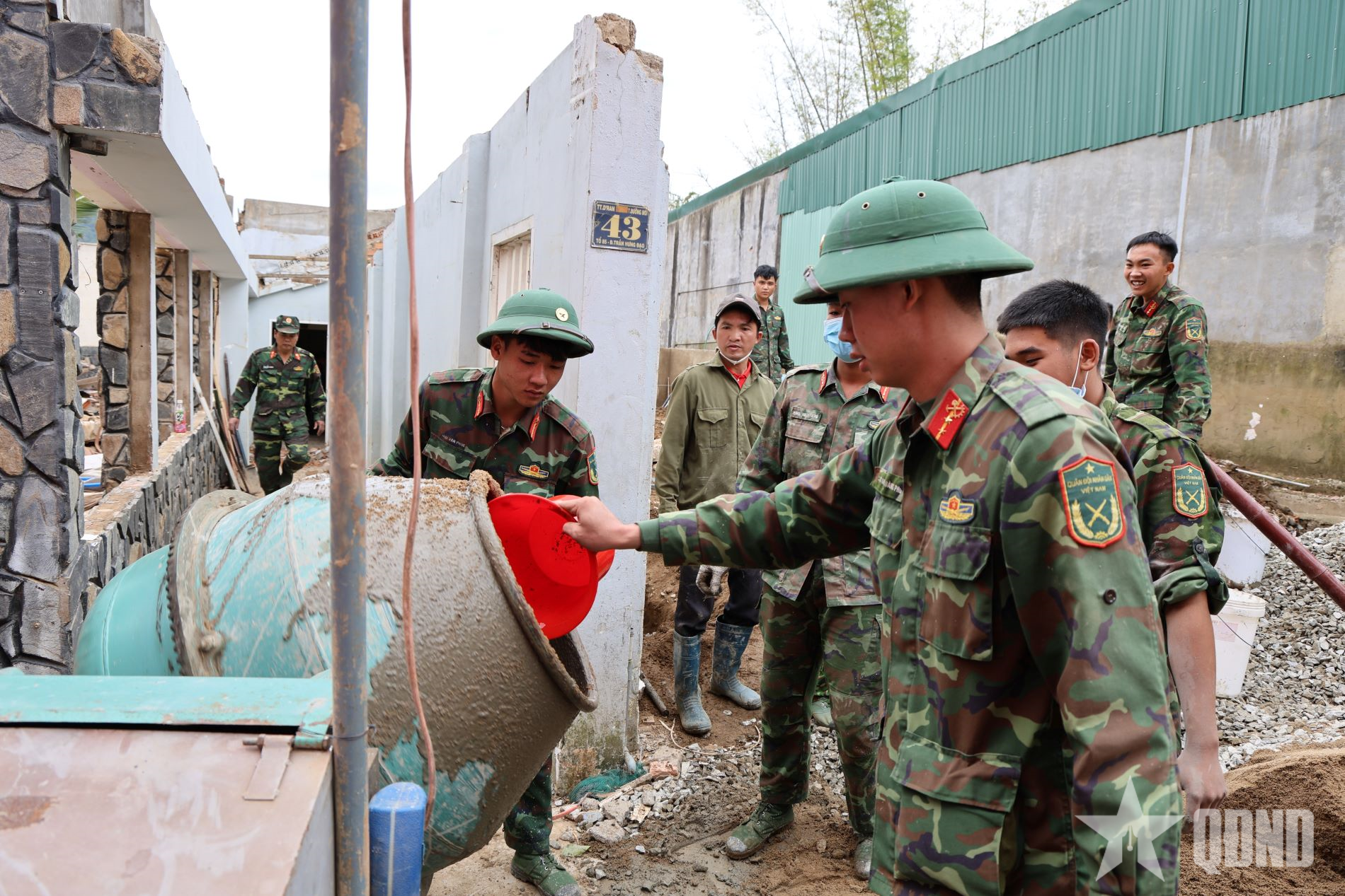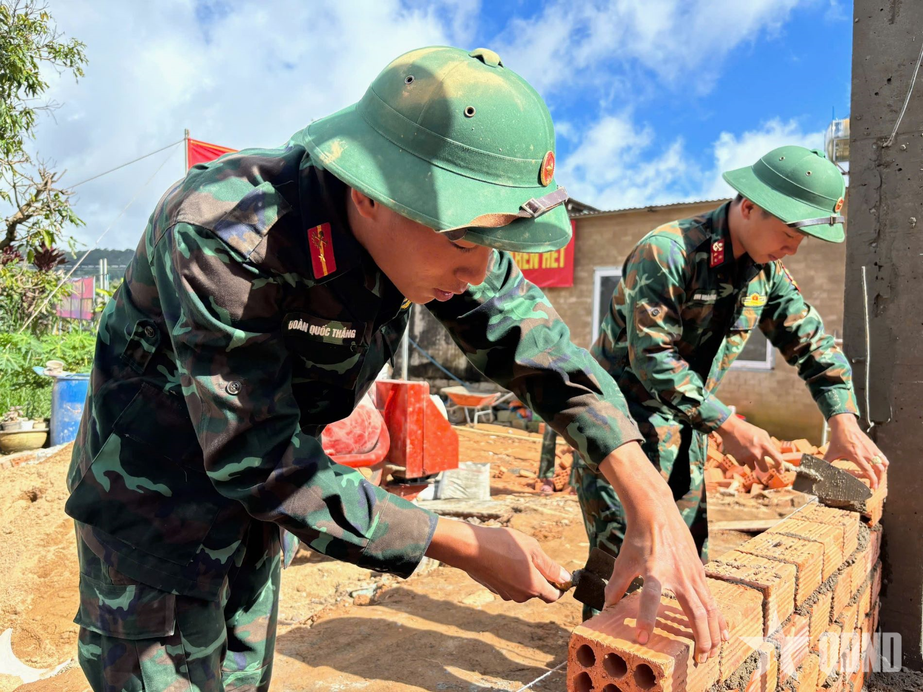 Tại công trình xây nhà của gia đình ông Mai Ngọc Hiệp, thôn Lạc Thiện 1, xã D’ran, dù trời đã xẩm tối nhưng các cán bộ, chiến sĩ vẫn chưa ngừng tay. Trên giàn giáo, một nhóm thợ vẫn đang miệt mài hoàn thành bức tường đang xây dở để kịp cất nóc nhà vào sáng hôm sau. Bên dưới, tốp thợ còn lại cũng đang hối hả trộn vữa, chuyển gạch, dọn vệ sinh. Chỉ sau một tuần, từ nền nhà cũ ngổn ngang đất đá, rác rưởi, ngôi nhà mới với diện tích 75m2 bền thế, vững chãi dần thành hình với tốc độ khiến nhiều người dân trong thôn không khỏi ngạc nhiên, thán phục.
