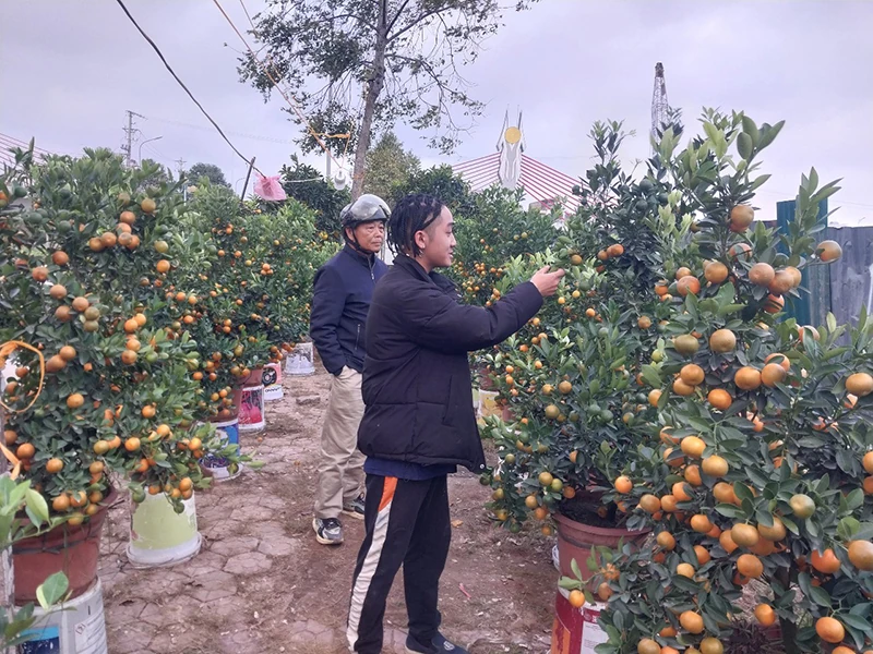 Đã 10 cái tết, Ngân dựng lều bán bưởi, quất. 10 năm, cây chưa bao giờ bị trộm. 10 năm thì có vài năm bị lỗ “chổng vó”. Năm nay, quất, bưởi Diễn đều mang về từ tỉnh Hưng Yên, như Ngân kể: “Về đây dựng lều, còn ngoài Hưng Yên cũng ăn chực, nằm chờ 3 ngày ở mấy nhà vườn mới chọn được cây ưng ý”.