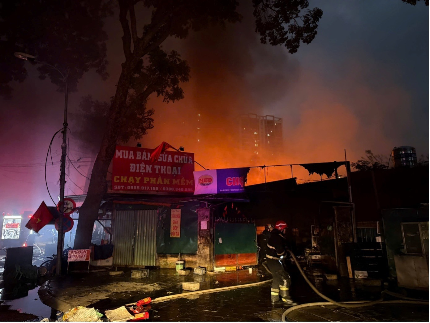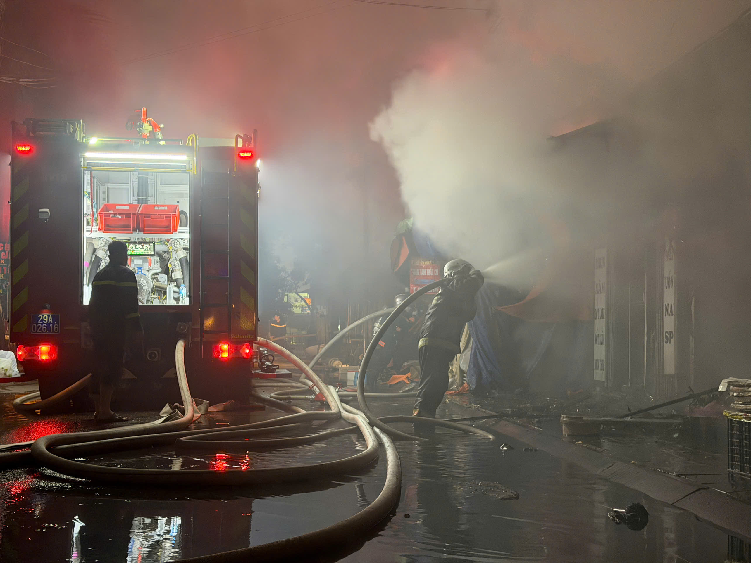 Khi lực lượng chức năng tiếp cận hiện trường, đám cháy đã bùng phát mạnh do nhiều vật liệu dễ cháy, tạo ra lượng lớn khói khí độc, tốc độ lan nhanh và tiềm ẩn nguy cơ cháy sang các ki-ốt, nhà dân xung quanh.