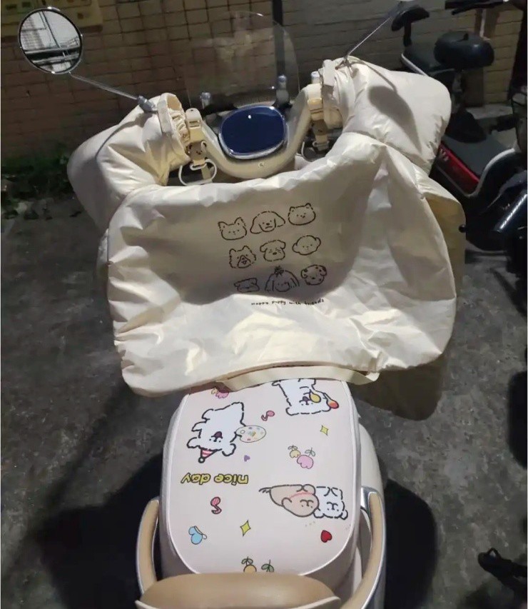 Trong số đó, phổ biến nhất là loại áo chắn gió liền khối, gần như bao trọn người và xe. Nhờ chất liệu vải dày dặn, diện tích che phủ lớn và khả năng chống lạnh hiệu quả, loại áo này đã trở thành "trang bị tiêu chuẩn" thiết yếu cho nhiều người đi xe đạp vào mùa đông khắc nghiệt ở xứ Trung.