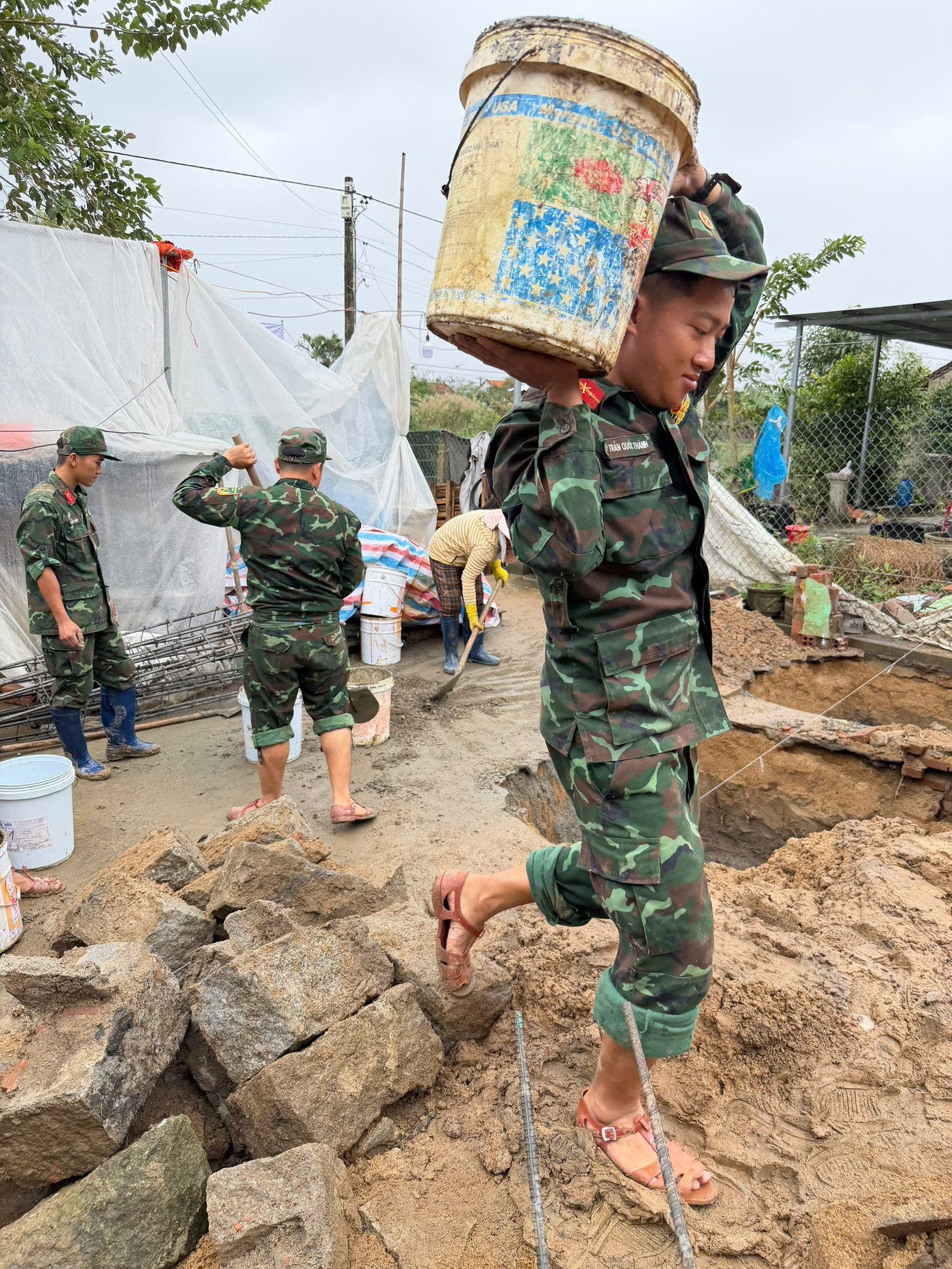 Tại “rốn lũ” Hòa Thịnh (Đắk Lắk), hình ảnh những người lính áo xanh lấm lem bùn đất, tay cuốc tay xẻng, vai gánh vật liệu, lặng lẽ dựng từng bức tường, từng mái nhà đã trở thành biểu tượng đẹp của tình quân – dân trong hoạn nạn.