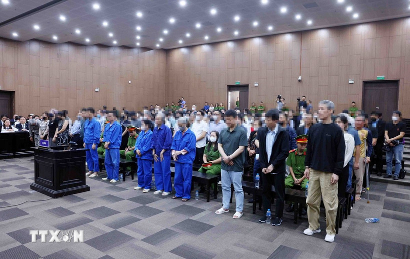 Các bị cáo tại phiên tòa xét xử. (Ảnh: Phạm Kiên/TTXVN)