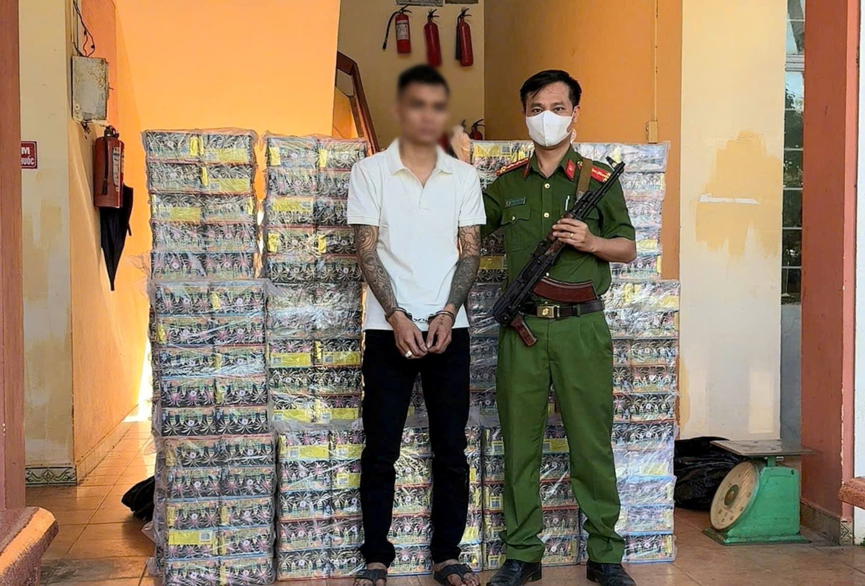 Khi đối tượng đang di chuyển qua thôn 3, xã Ia Krái về nơi tàng trữ nhằm mục đích bán kiếm lời thì bị bắt quả tang. Lực lượng chức năng đã thu được 210 hộp pháo hoa loại 49 ống, tổng trọng lượng 315 kg, nghi là pháo nổ.