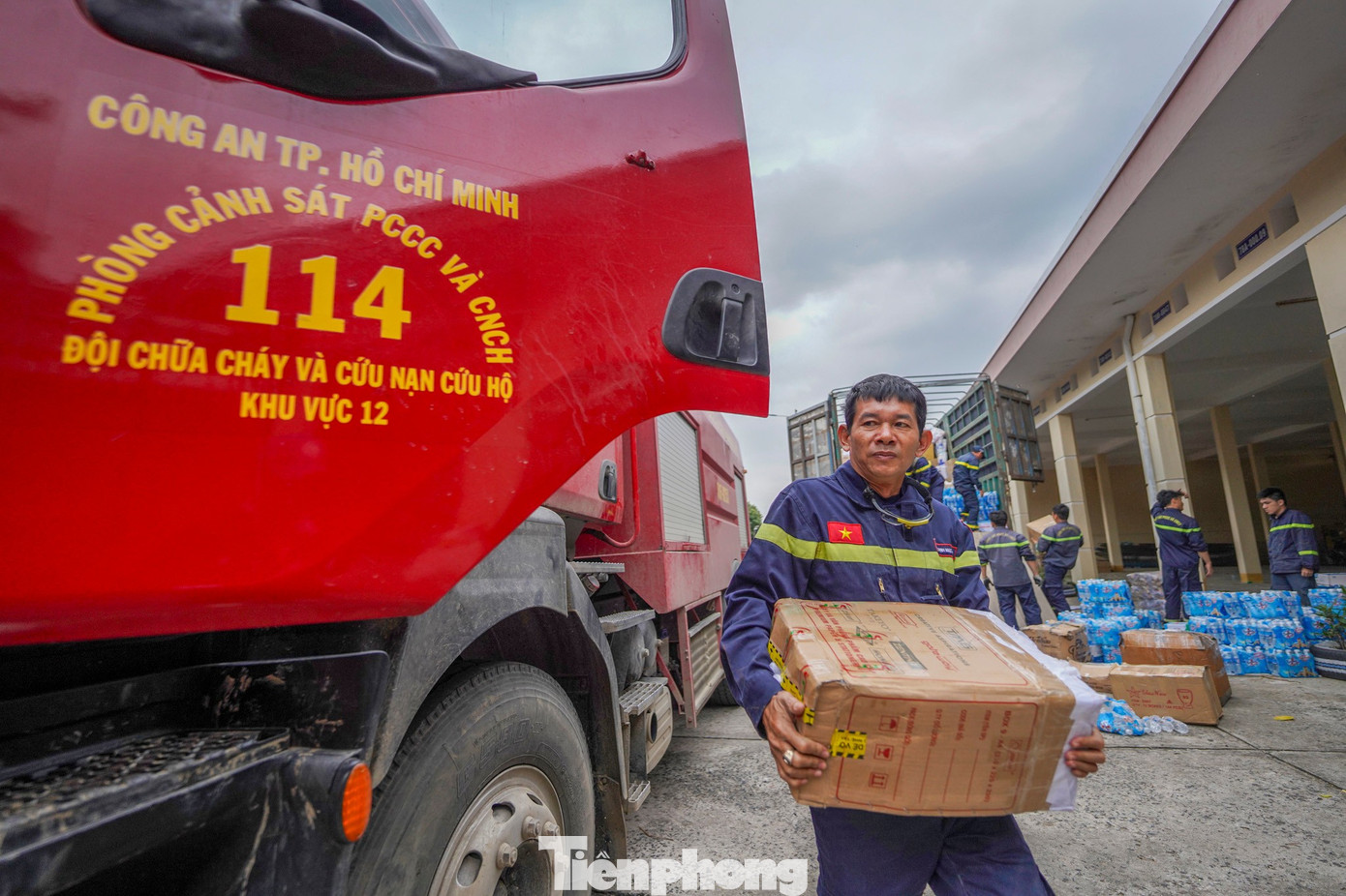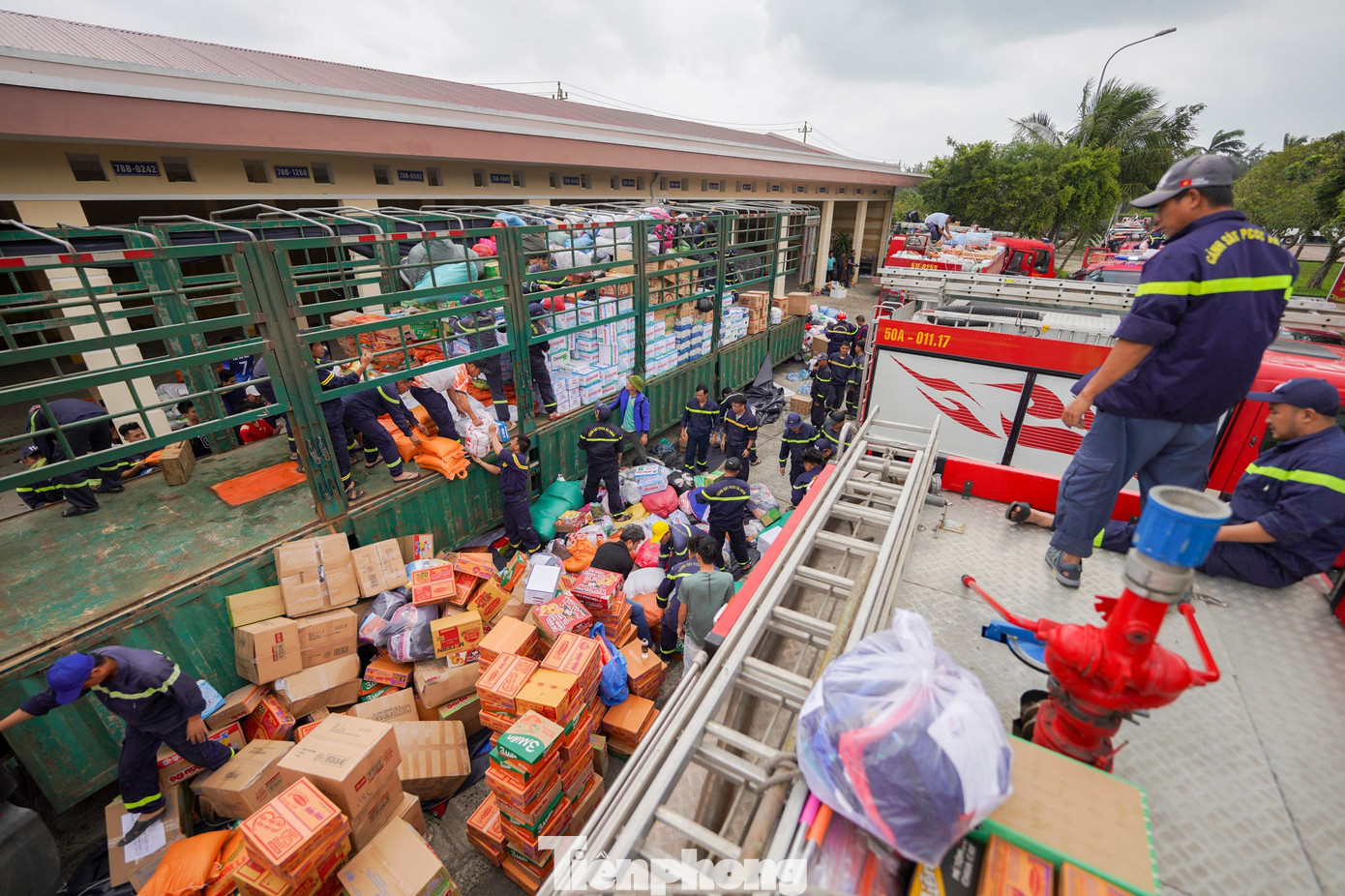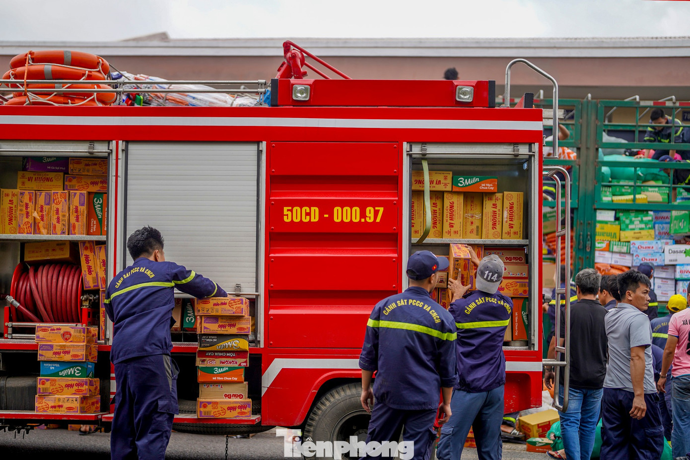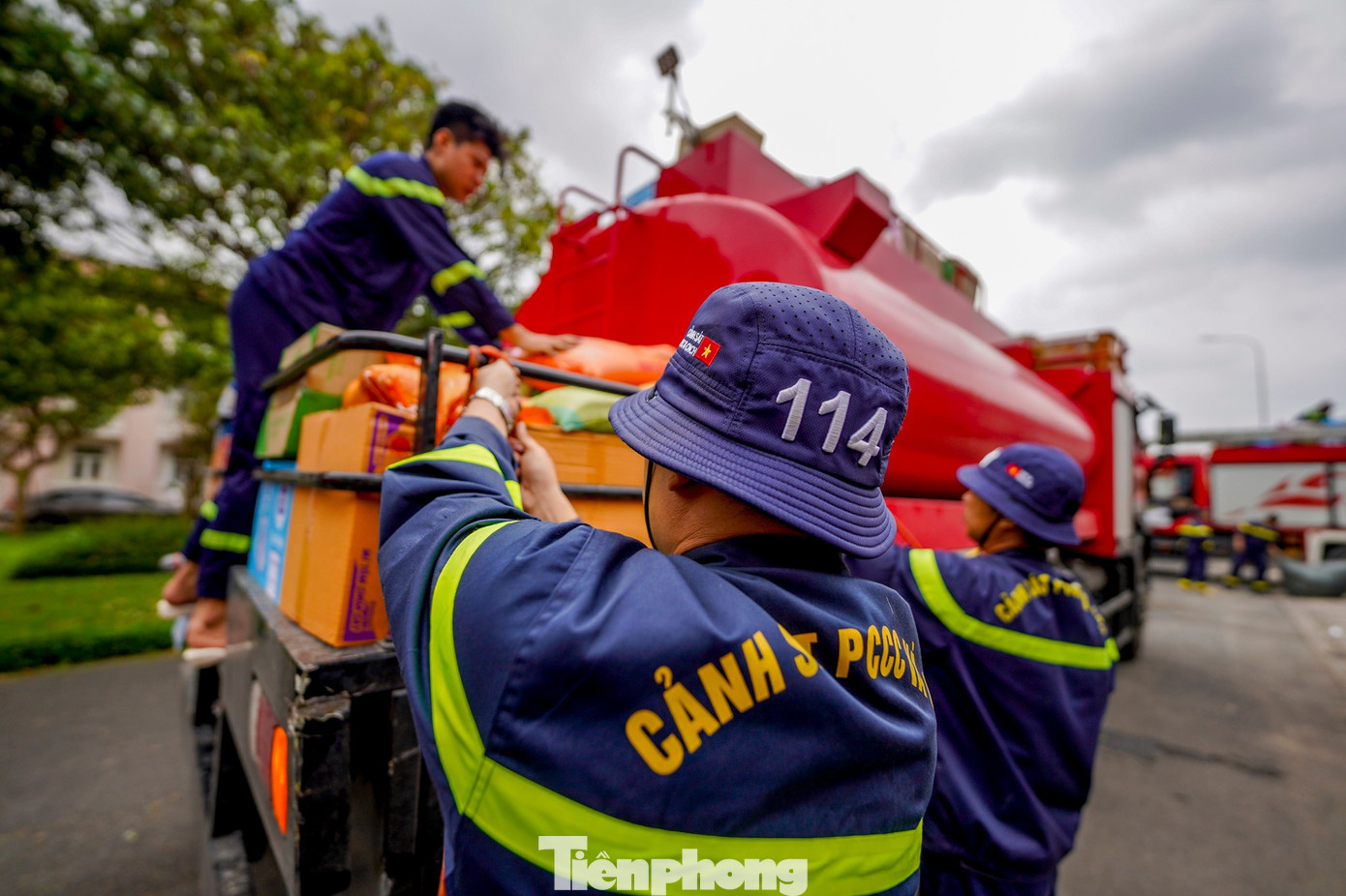 Gác lại nhiệm vụ dập lửa, những chiếc xe cứu hỏa vẫn miệt mài nổ máy, hàng cứu trợ được chuyển đi không chỉ là nhu yếu phẩm, mà còn là hơi ấm tình người lan tỏa, xua đi cái lạnh lẽo của bùn đất và mất mát nơi vùng lũ.