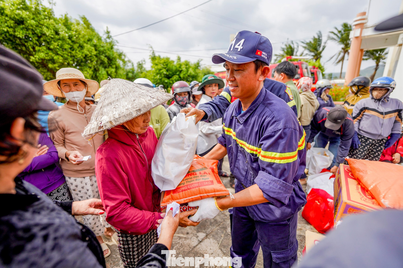 Một chiến sĩ trẻ chia sẻ: "Bà con mất mát nhiều quá rồi... Những gì tụi mình mang tới chỉ là chút nhu yếu phẩm, nhưng hy vọng là kịp lúc, đúng chỗ".