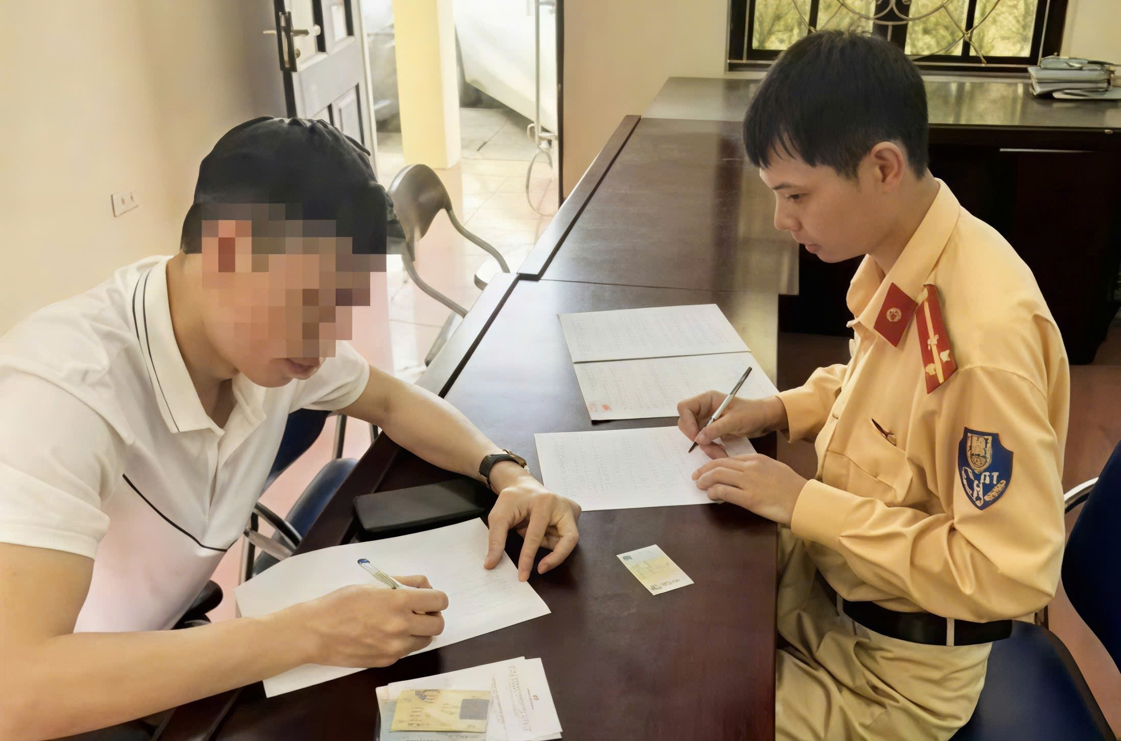 Lực lượng chức năng làm việc với T.V.Q. (Ảnh: Cục CSGT)