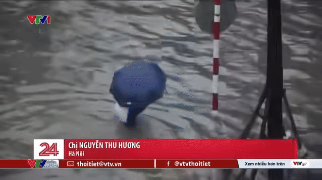 Trong đoạn clip này nổi bật lên là khoảnh khắc một cô gái trẻ ôm theo balo, tay che ô, lội nước bì bõm do đường phố bị ngập nặng. Đáng chú ý hơn nữa, cô gái liên tục bị vấp ngã khiến cả người "chìm trong biển nước".