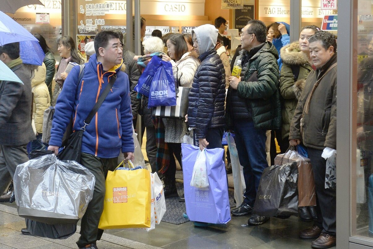 Một cửa hàng miễn thuế ở khu Ginza, Tokyo kín khách du lịch Trung Quốc, tháng 2/2015. Ảnh: Kyodo.