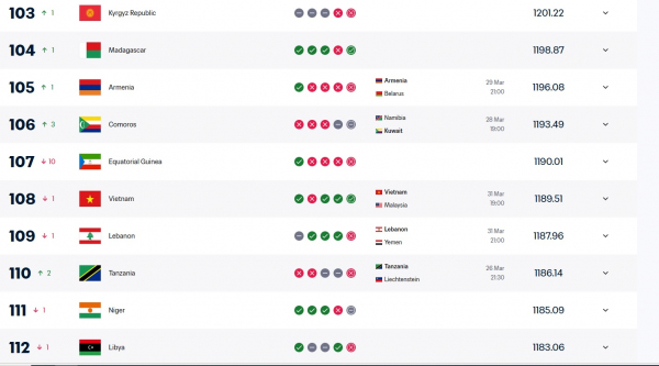 Thực tế, thứ hạng 108 thế giới hiện tại phản ánh đúng trạng thái “chưa cập nhật” của hệ thống, chứ không phải sự suy giảm về phong độ hay năng lực chuyên môn của ĐTQG Việt Nam. Nếu tính đủ điểm từ trận thắng Malaysia, nhiều khả năng thầy trò HLV trưởng sẽ được cải thiện vị trí trong lần công bố tiếp theo của FIFA.
