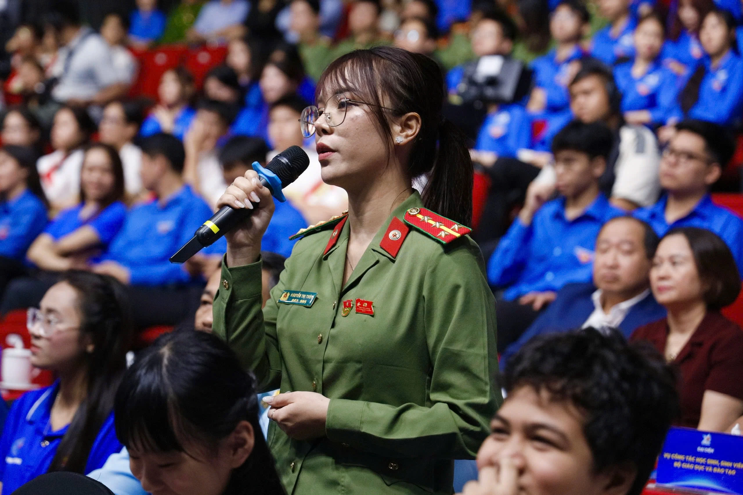 Đồng chí Lê Nguyễn Thái Minh, Bí thư Đoàn phường Nha Trang (Tỉnh đoàn Khánh Hòa), đặt câu hỏi trực tuyến tại điểm cầu tỉnh Khánh Hòa.