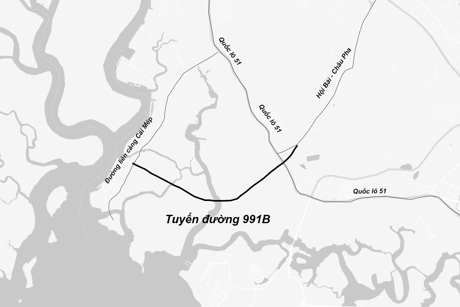 Dự án đường 991B được Thủ tướng Chính phủ phê duyệt chủ trương đầu tư từ tháng 8/2016, với tổng mức đầu tư gần 4.000 tỷ đồng, trong đó chi phí xây dựng là 2.459 tỷ đồng. Tuyến đường có chiều dài 9,73 km, điểm đầu tại Quốc lộ 51, điểm cuối tại hạ lưu cảng Cái Mép.