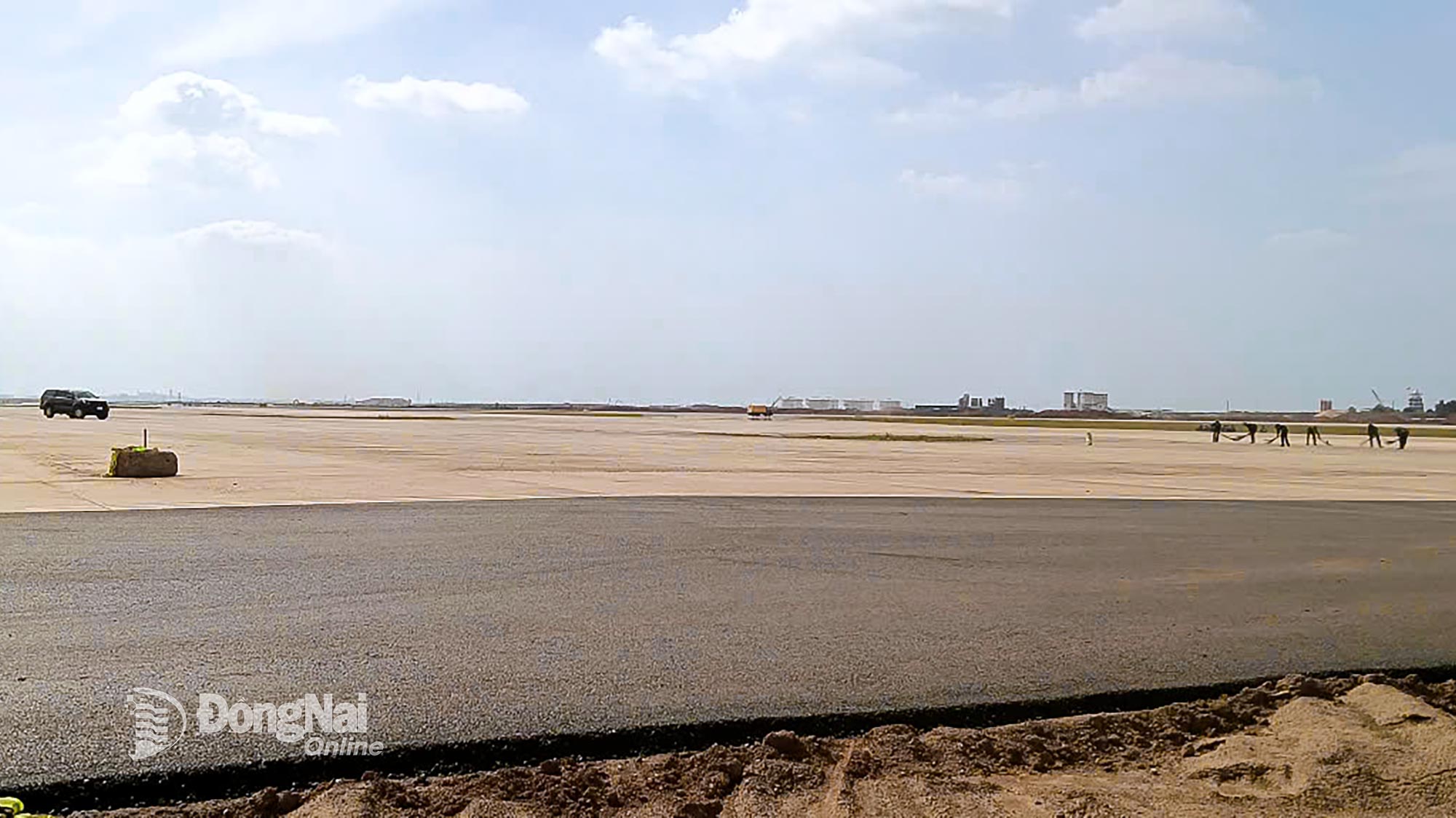 Trên đường băng số 1 Sân bay Long Thành, các phương tiện phục vụ chuyến bay kỹ thuật đã được điều động đến. Ảnh: Phạm Tùng