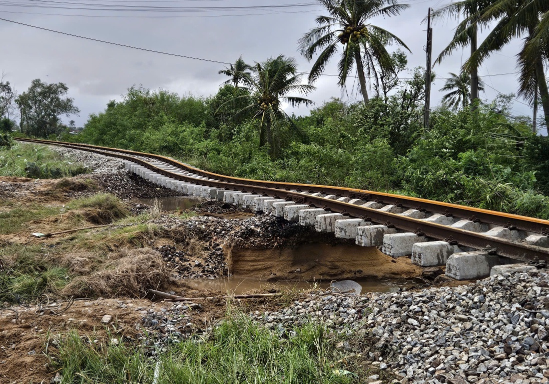 Nhiều đoạn đường sắt bị thiệt hại nặng do mưa lũ.