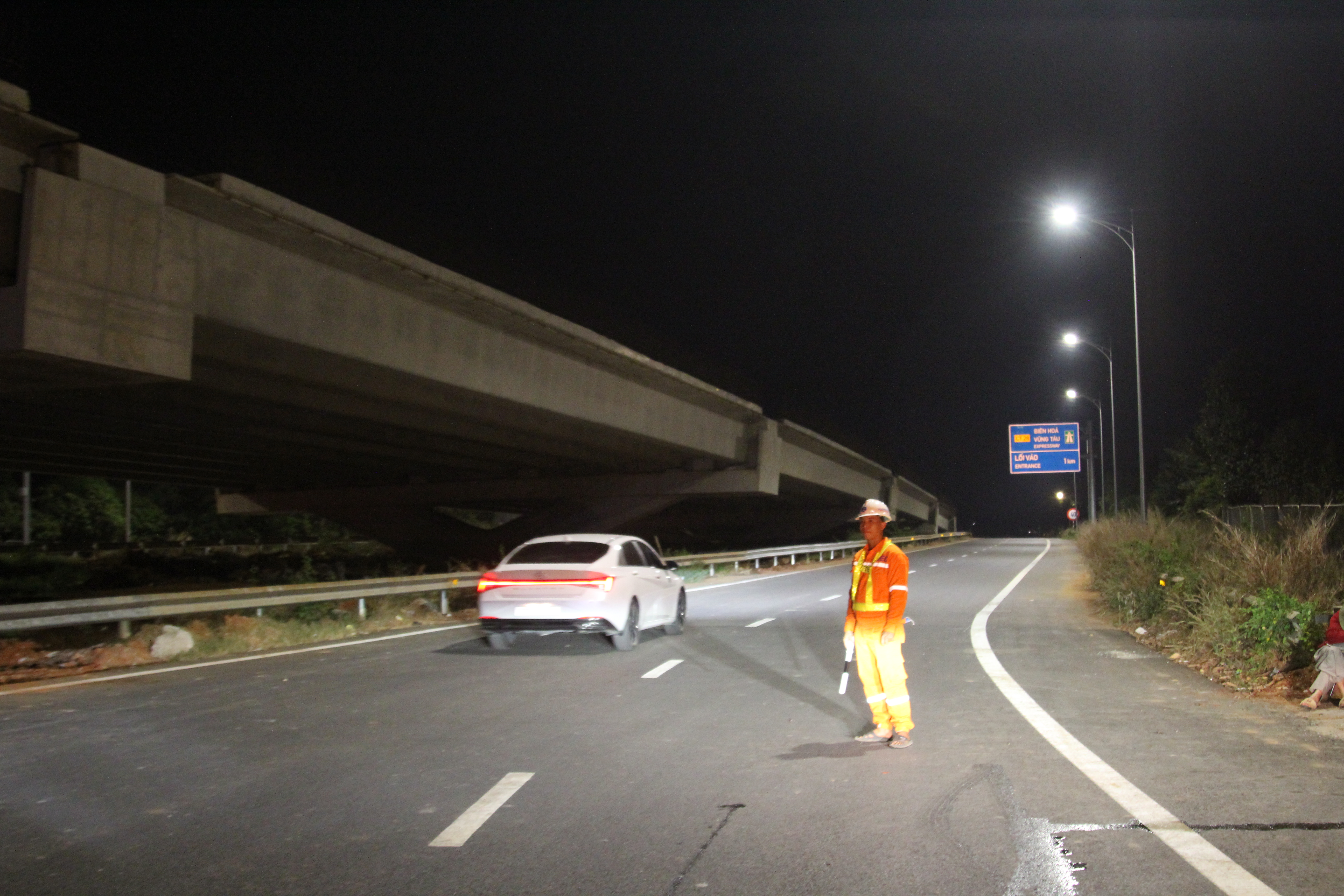 Nhân viên hỗ trợ điều tiết phương tiện trong đêm đầu thông tuyến đường cao tốc Biên Hòa - Vũng Tàu