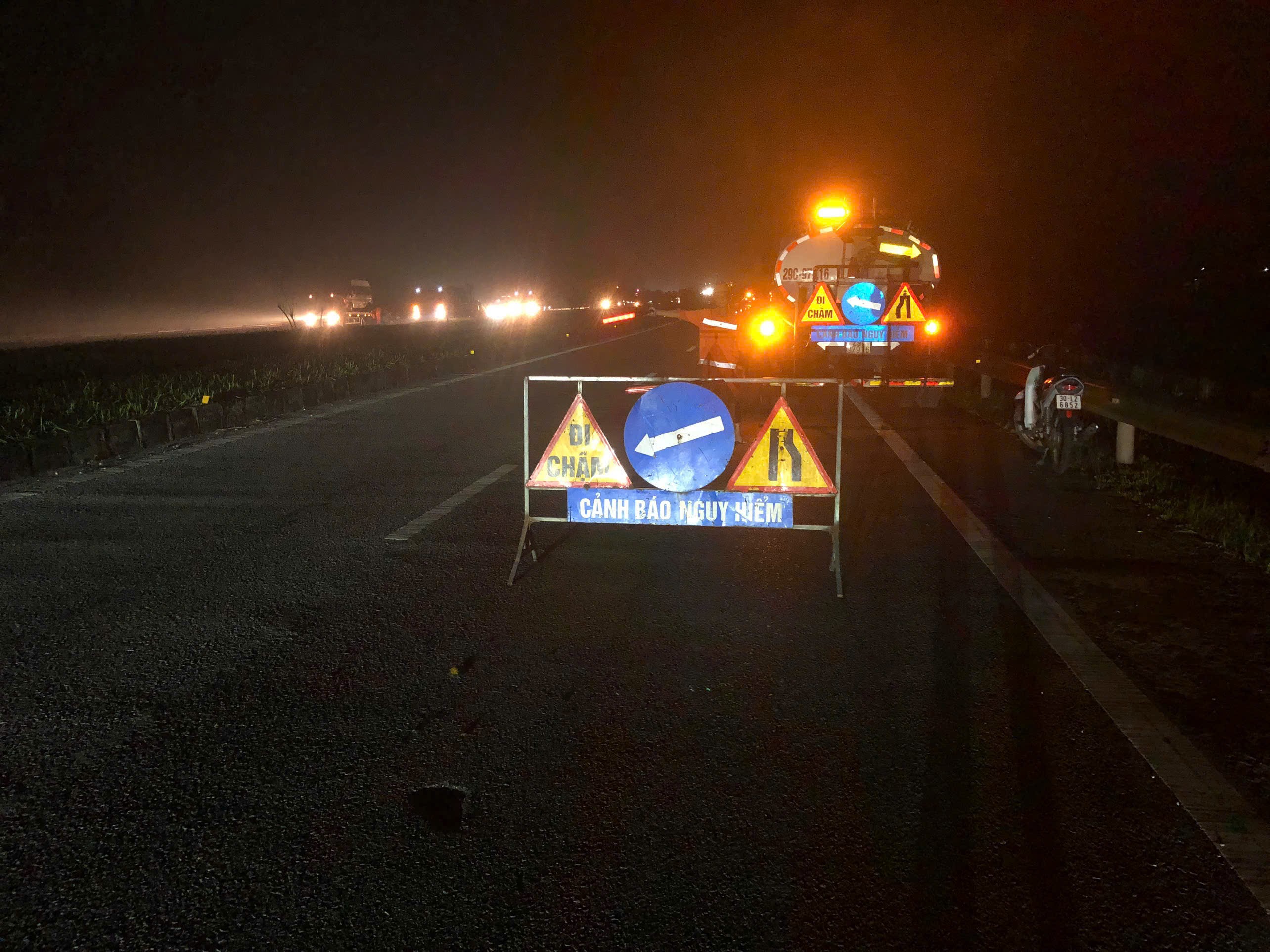 Các đơn vị chức năng phân luồng giao thông để đảm bảo an toàn giao thông trên đường cao tốc Hà Nội - Thái Nguyên. Ảnh: Cục Đường bộ Việt Nam cung cấp