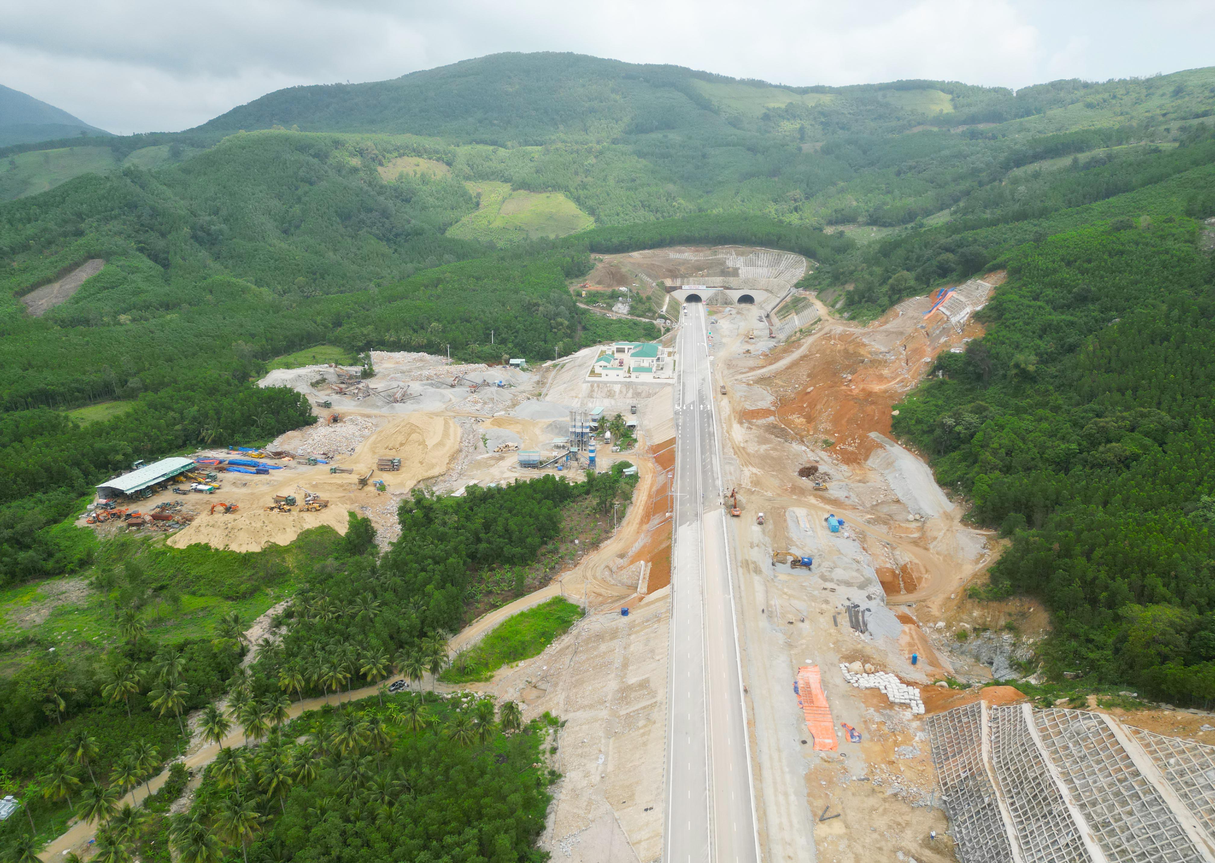 Cửa hầm cao tốc xuyên núi Bình Đê dài 3,2km trên dự án thành phần cao tốc Quảng Ngãi - Hoài Nhơn đã hoàn thành chờ thông xe chính thức