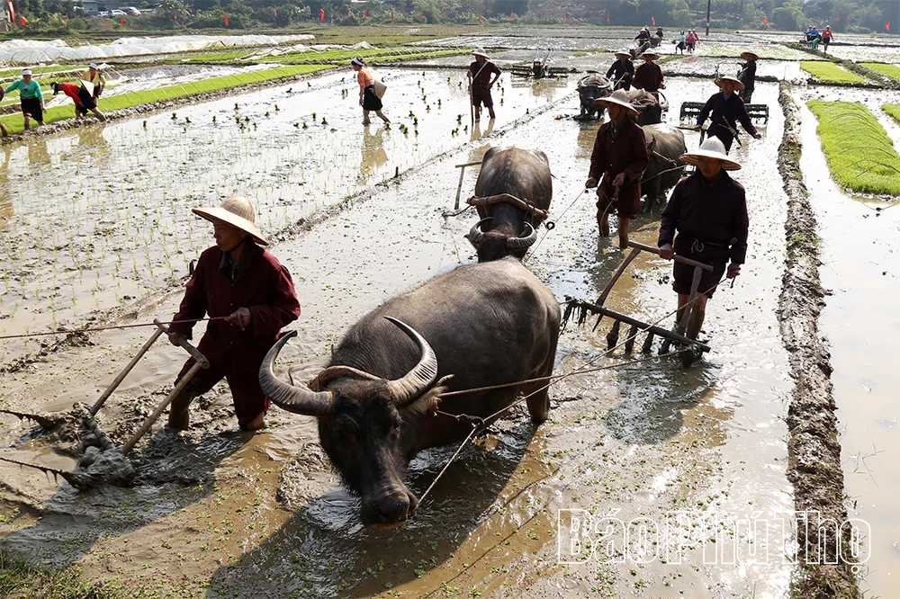 Không khí cày bừa nhộn nhịp tại Lễ hội Khai hạ Mường Bi.
