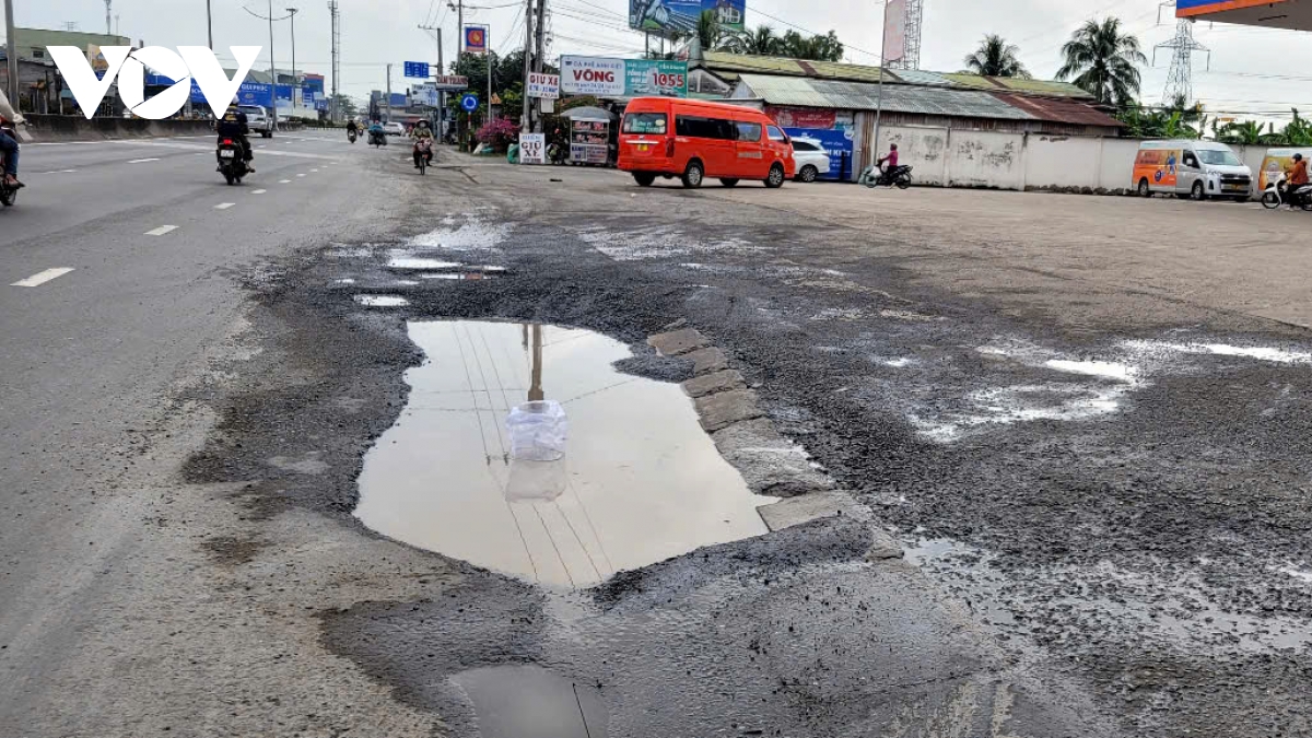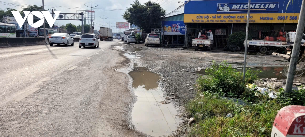 Vào thời điểm mùa mưa như hiện nay, mặt đường dẫn vào cao tốc Trung Lương - TP. HCM (địa bàn xã Long Hưng, tỉnh Đồng Tháp) xuống cấp trầm trọng. Ven đường xuất hiện nhiều ổ gà, ổ voi chứa đầy nước mưa. Khi mưa to, nước tràn gần nửa mặt đường, gây mất an toàn giao thông, nhất là đối với người đi bộ, đi xe máy và xe đạp.