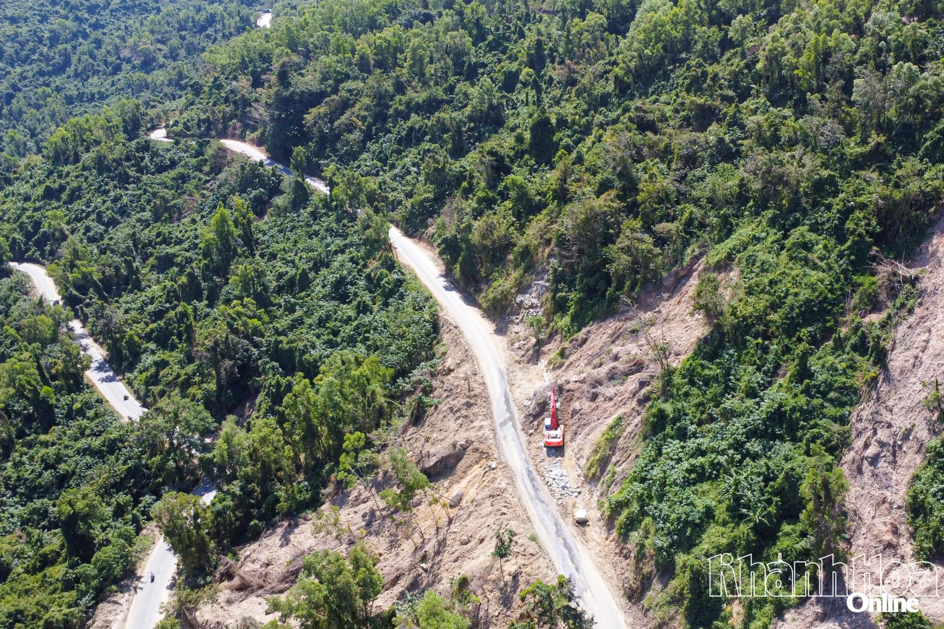 Một đoạn trên đèo Khánh Sơn đã thi công xong.