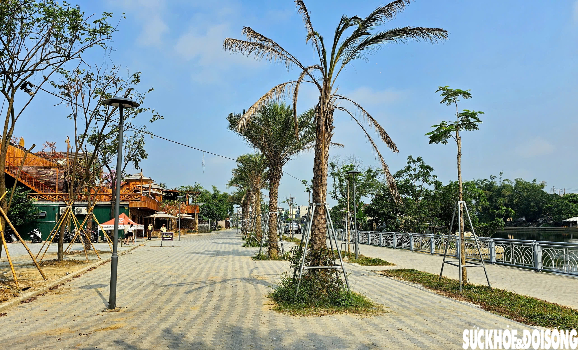 Theo thiết kế, tuyến đường đi bộ được lát đá granite, lan can bằng thép không gỉ sơn tĩnh điện. Dự án còn có bãi đỗ xe rộng hơn 1300m², cầu vòm dài 36m và 11 bến nước. Công trình được khởi công từ tháng 7/2023 tuy nhiên đến nay vẫn chưa chính thức hoàn thành đồng bộ, bàn giao theo kế hoạch do vướng mặt bằng.
