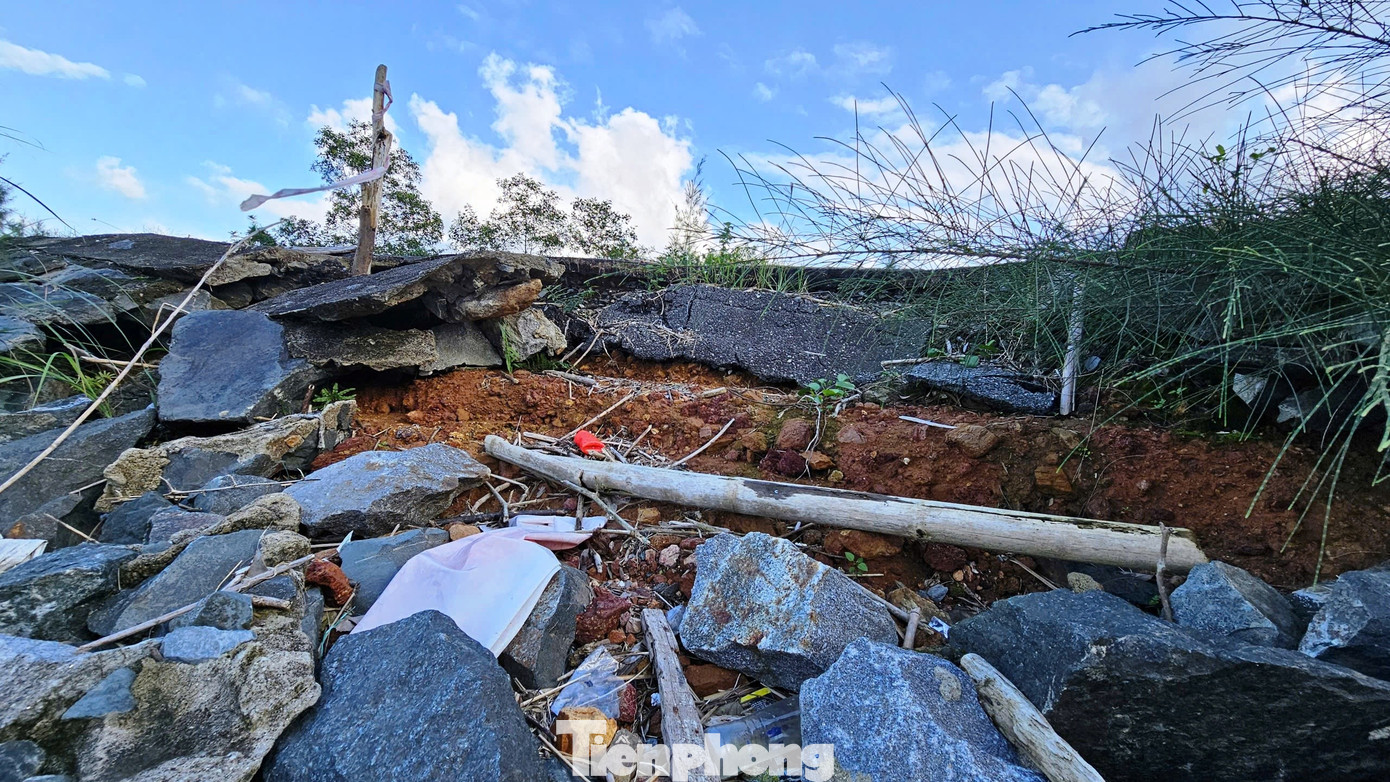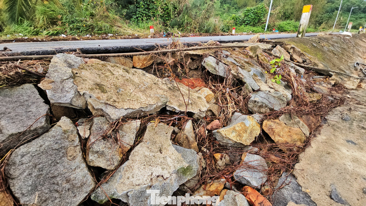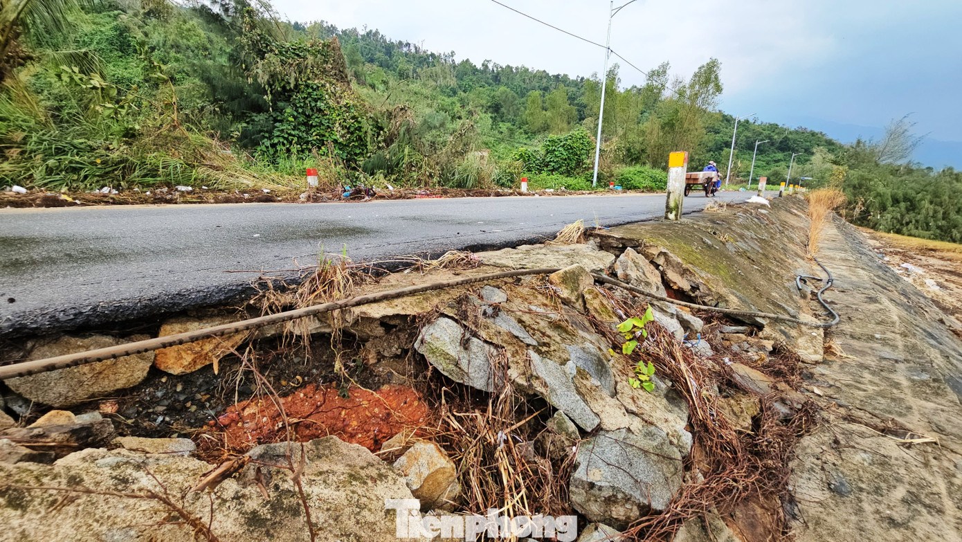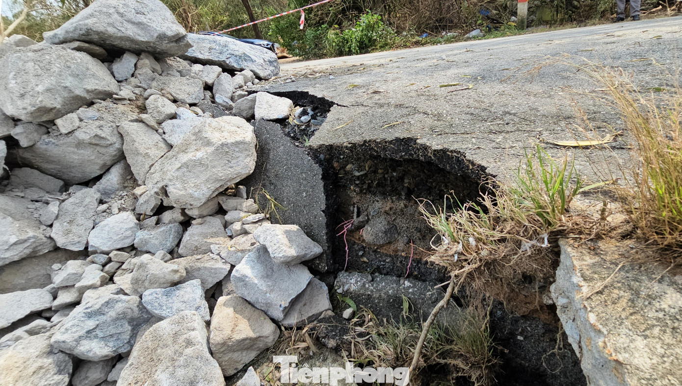 Theo ghi nhận tại hiện trường, dọc tuyến xuất hiện nhiều điểm nứt toác mặt đường, sạt lở taluy âm tạo thành các “hàm ếch” ăn sâu vào nền đường. Có đoạn sạt lở kéo dài hơn 100m, trong đó một số vị trí hư hỏng ở mức nghiêm trọng phải khoanh vùng, rào chắn cảnh báo giao thông.
