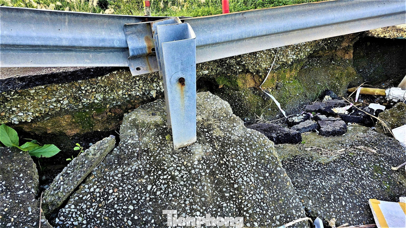 Tại nhiều điểm, toàn bộ mái taluy bê tông đã bị xói lở, sụp đổ hoàn toàn, để lộ đất đá hộc phía dưới, sạt lở áp sát mép đường, kéo theo thân hộ lan bị sụt lún, nghiêng đổ..., tiềm ẩn nguy cơ tai nạn giao thông, nhất là vào ban đêm hoặc khi có mưa lớn gây hạn chế tầm nhìn.