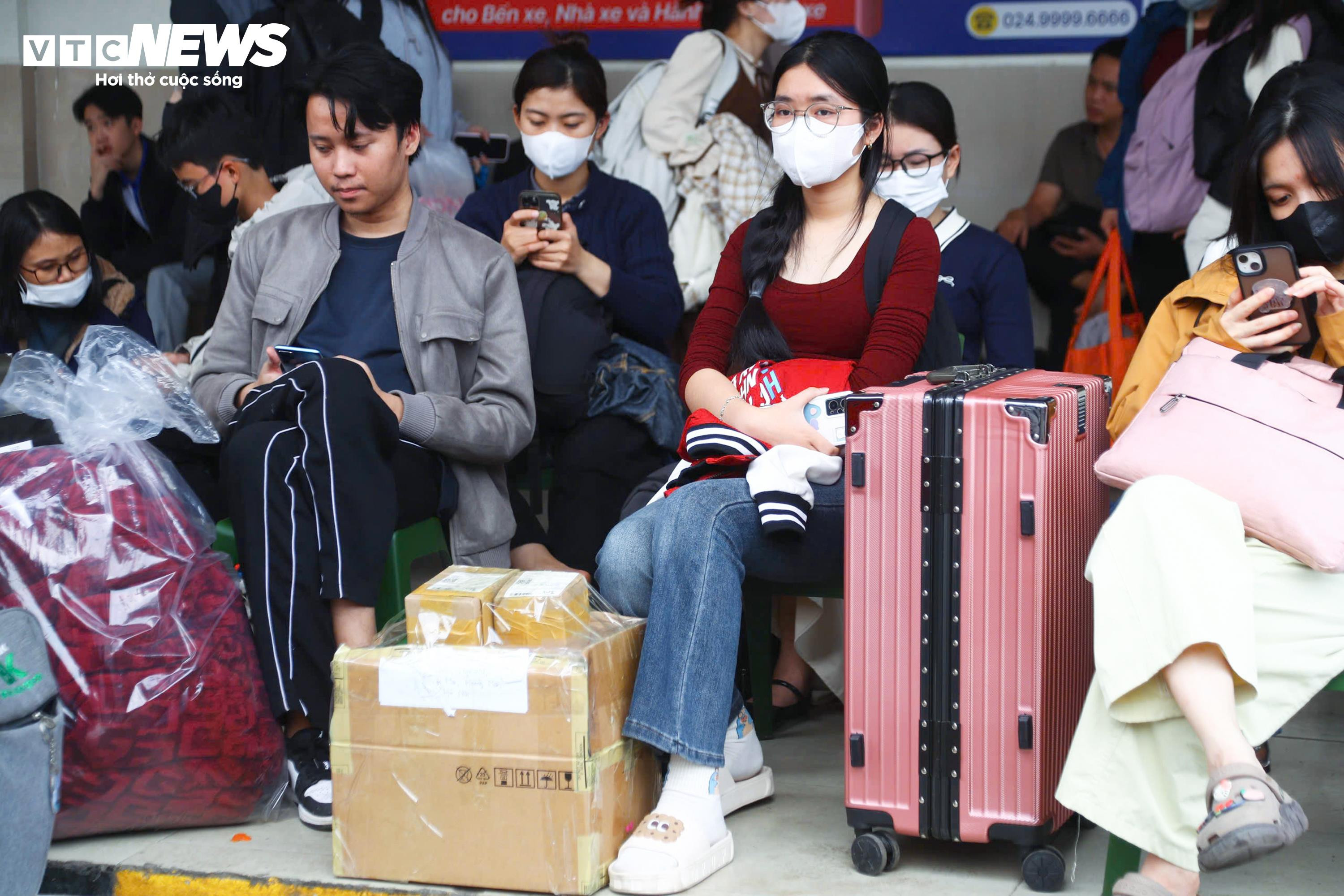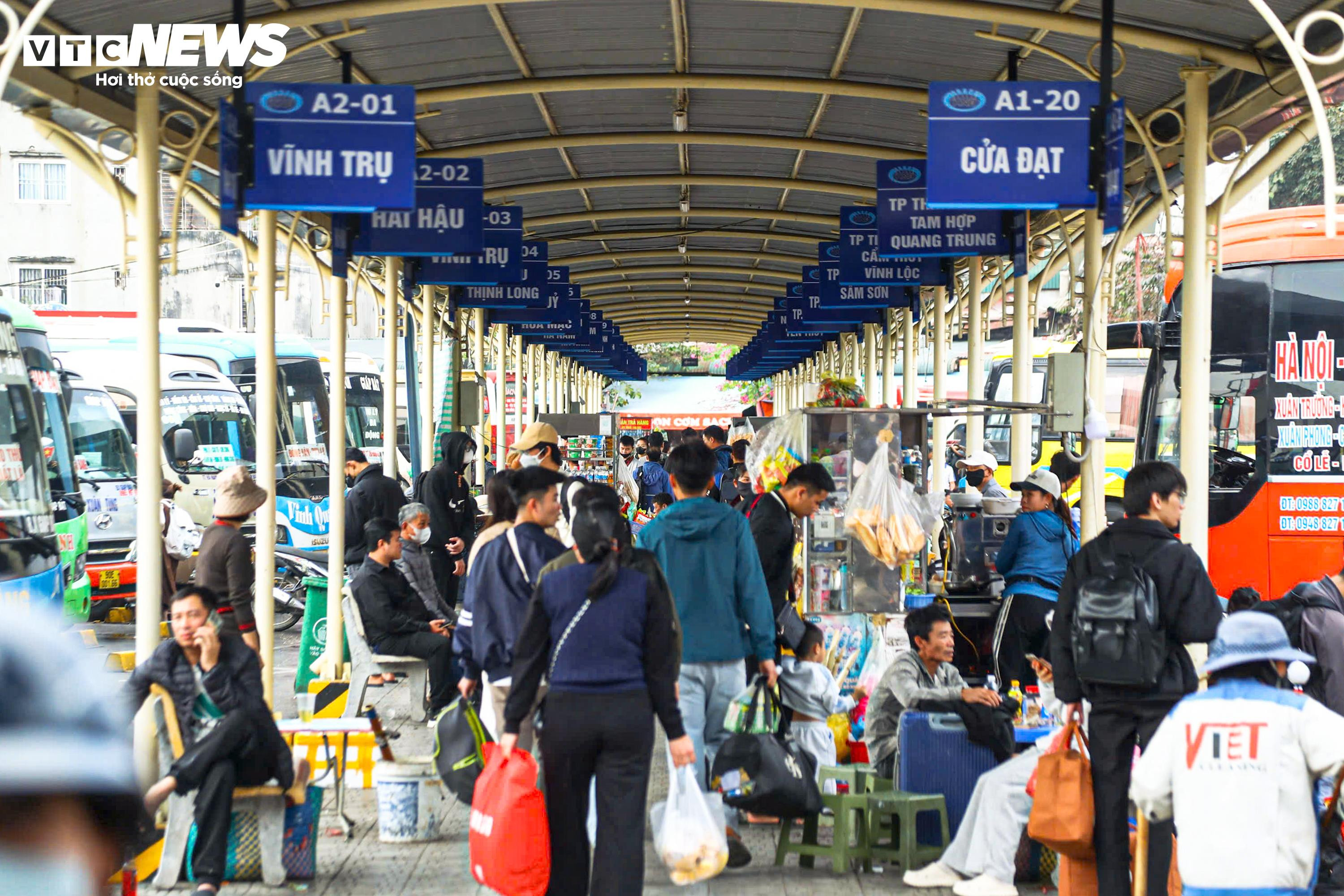 Tại bến xe Giáp Bát, nhiều người dân đã có mặt từ sớm, xếp hàng chờ lên xe về quê.