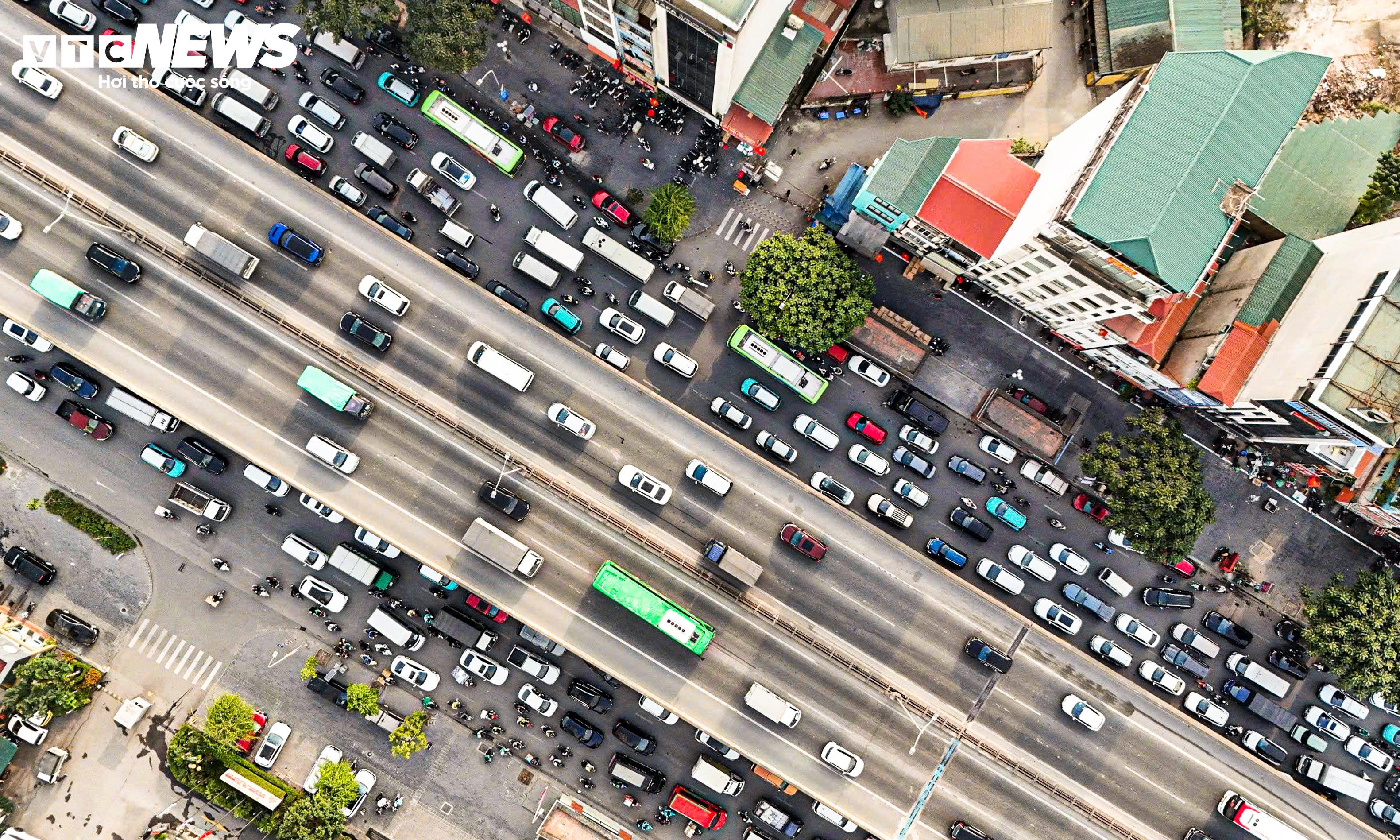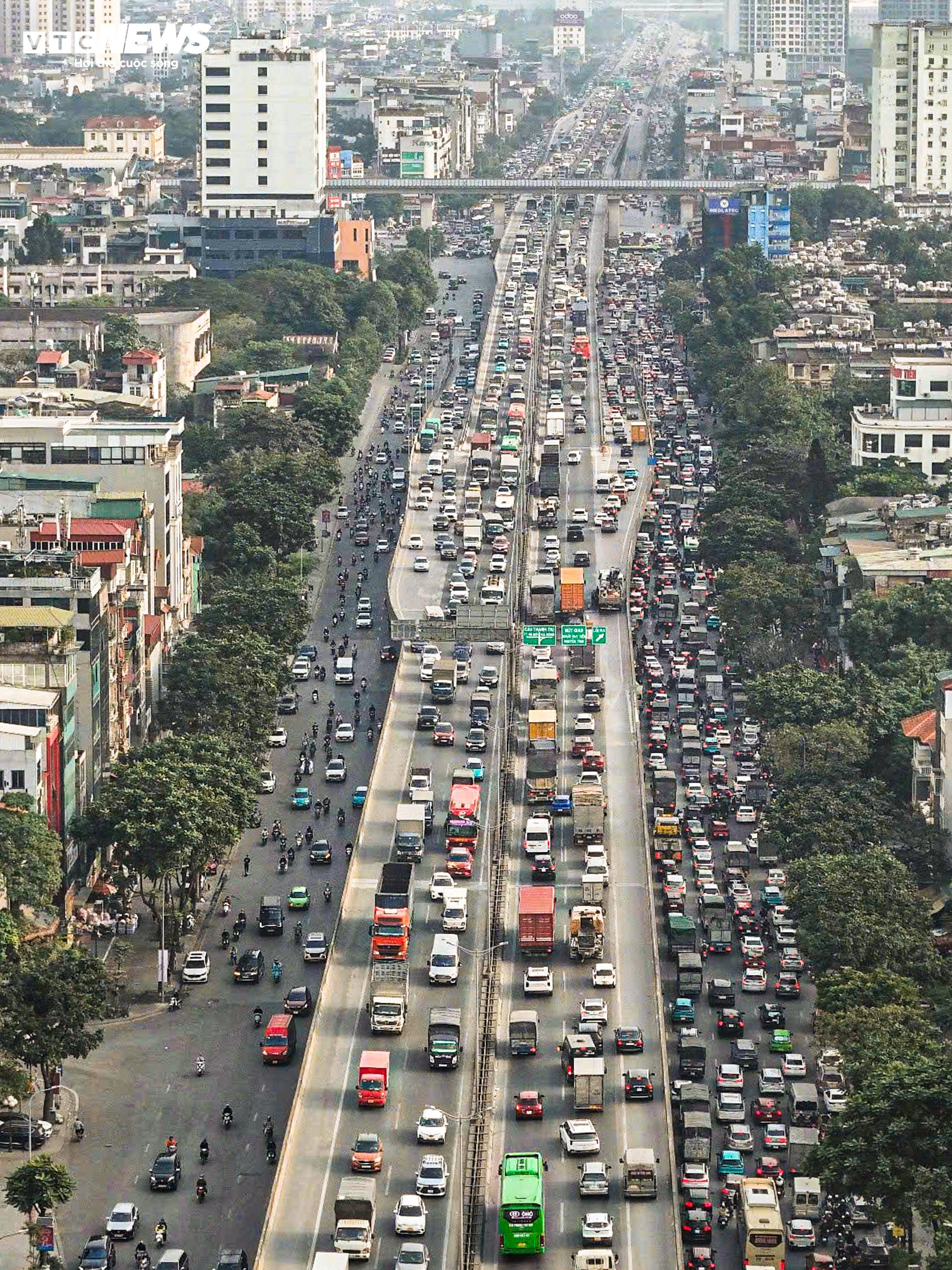 Hàng nghìn ô tô, xe máy chật vật nhích từng mét trên đường Vành đai 3 trên cao, chiều 31/12.