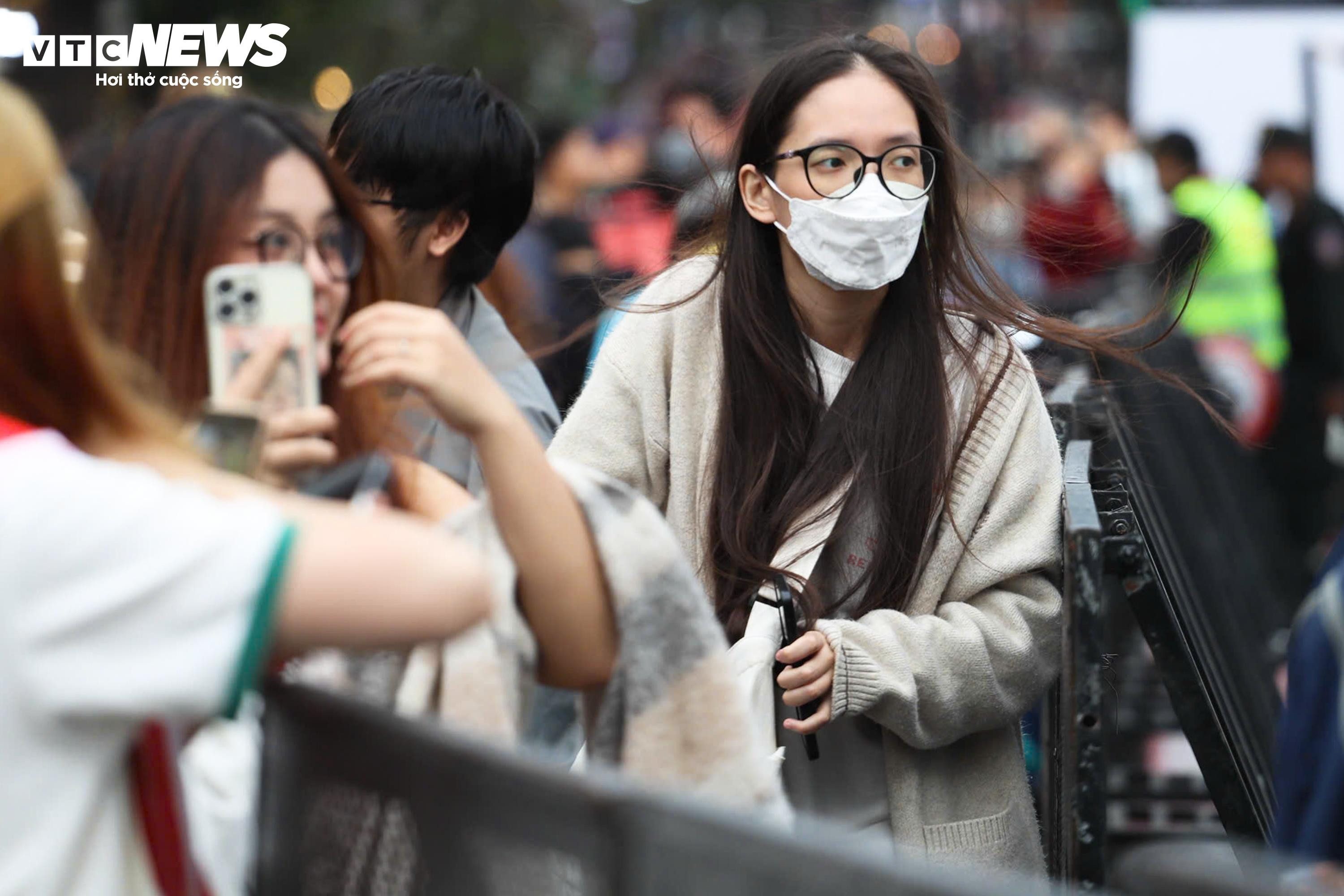 Nhiều bạn trẻ đổ về phố đi bộ Hồ Gươm, chờ tham dự chương trình Hà Nội countdown 2026 và khoảnh khắc đếm ngược đón năm mới.