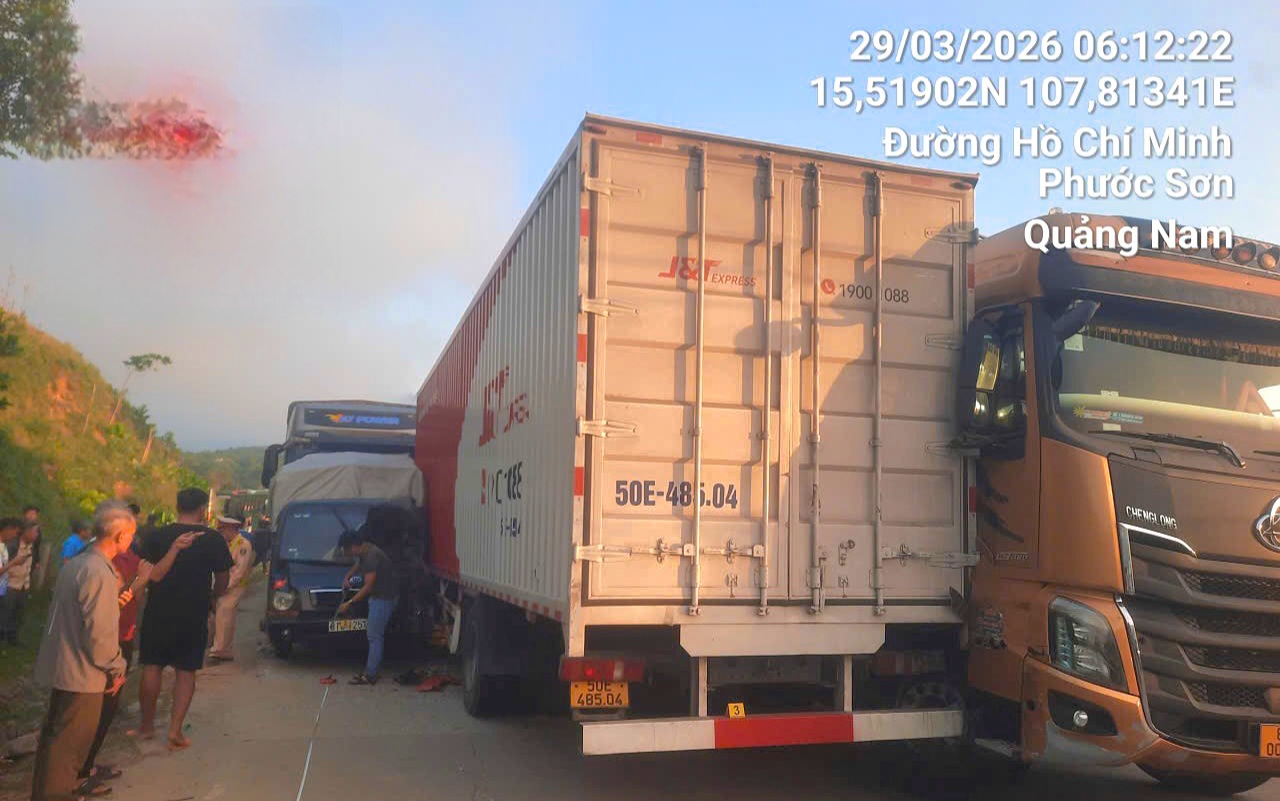 Vụ tai nạn liên hoàn khiến giao thông trên đường Hồ Chí Minh qua xã Khâm Đức ách tắc. Đến 6h45 sáng 29/3, lực lượng chức năng đã xử lý xong hiện trường tai nạn, tuyến đường thông trở lại.