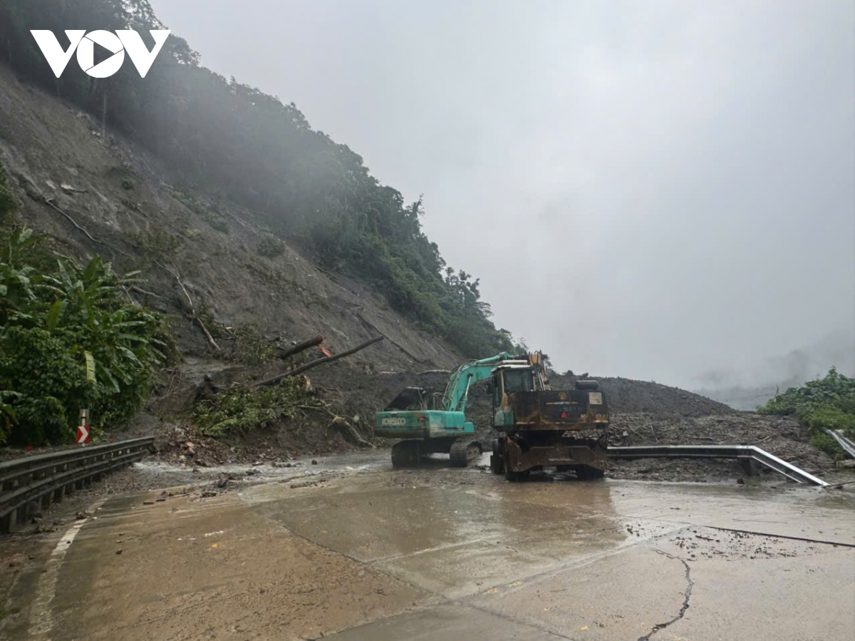 Các đơn vị quản lý đường bộ đã huy động tối đa nhân lực, thiết bị, vật tư thi công xuyên đêm để khắc phục, với quyết tâm cao nhất nhằm sớm thông tuyến đường Hồ Chí Minh đoạn qua đèo Lò Xo.