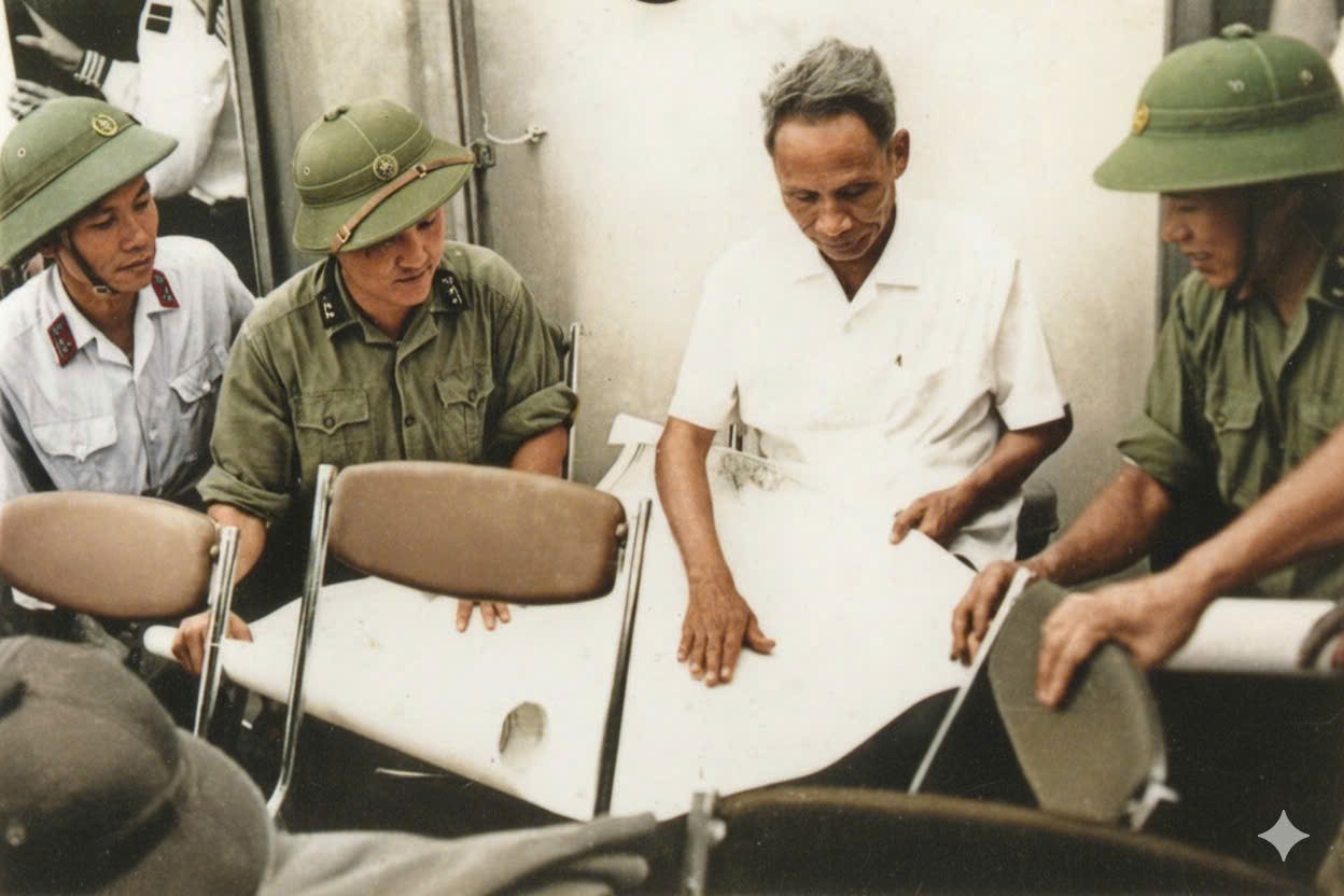 Đồng chí Phạm Văn Đồng - Thủ tướng Chính phủ giao nhiệm vụ cho đồng chí thuyền trưởng Võ Nhân Huân vận chuyển vũ khí chi viện chiến trường miền Nam. Ảnh: Tư liệu
