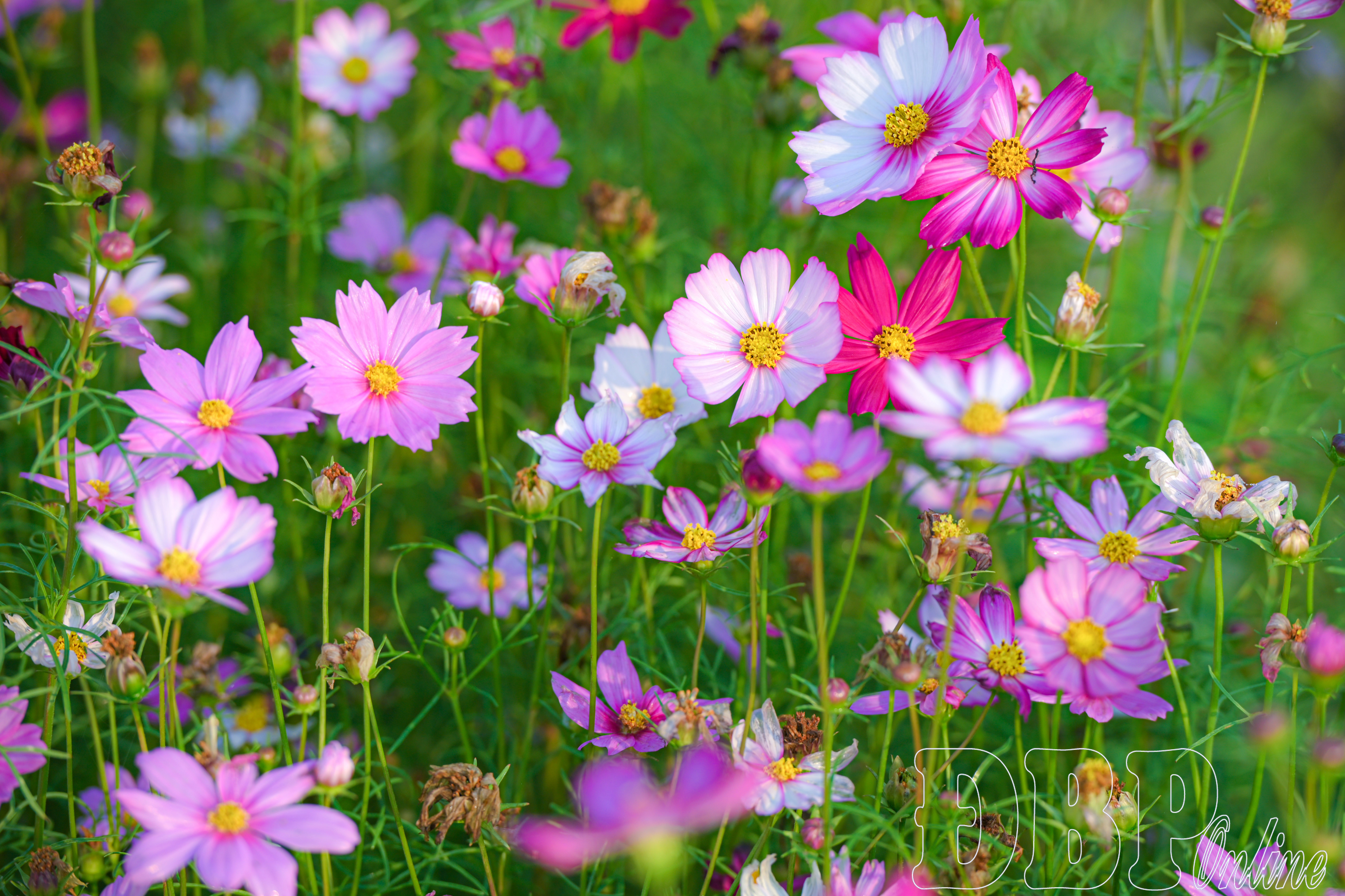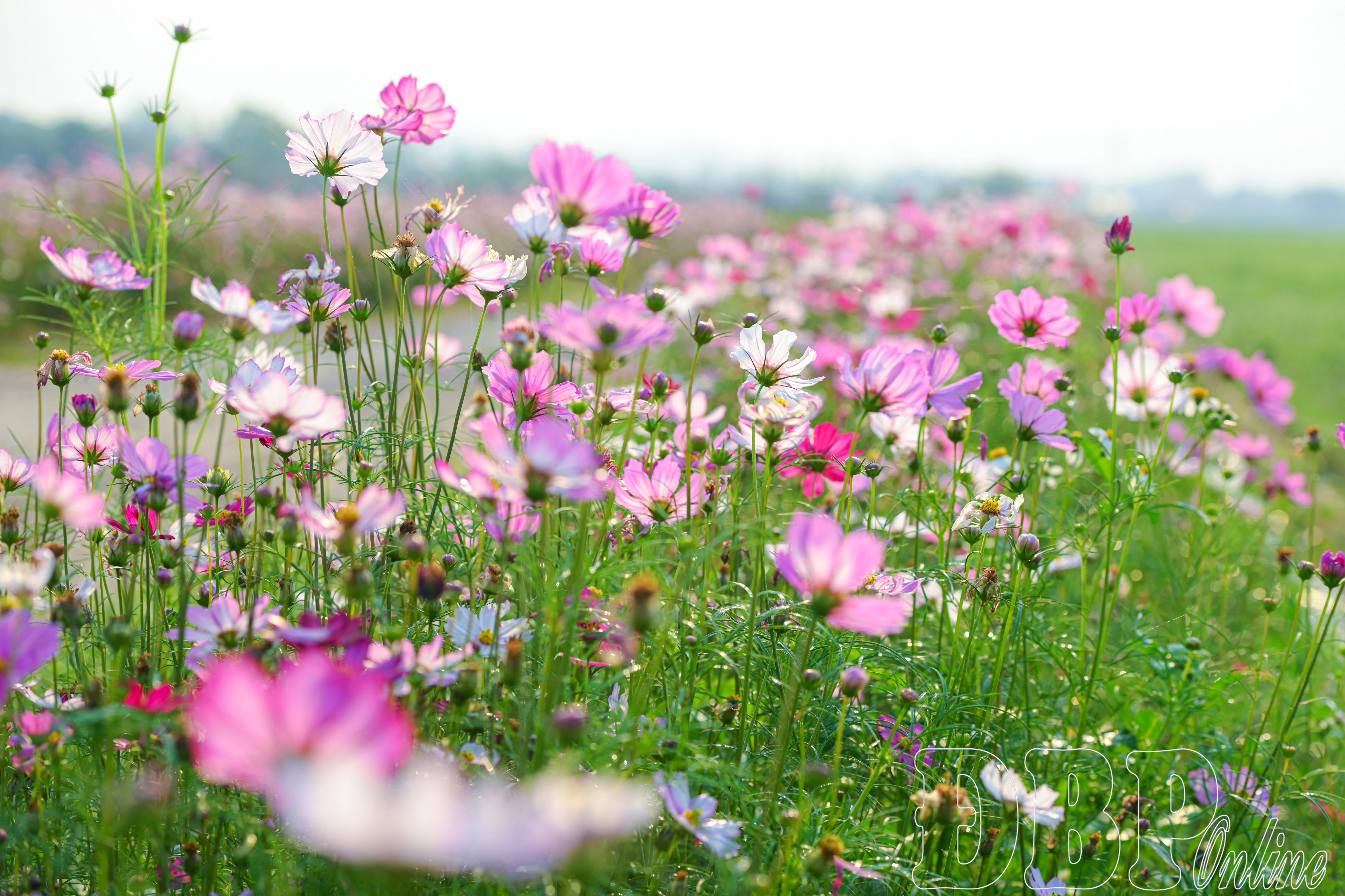 Với chiều dài không lớn nhưng những luống hoa được trồng thành hàng đều tăm tắp, khoảng cách hợp lý. Sắc hồng phớt, tím nhạt, trắng xen lẫn nhau, rung rinh theo từng làn gió, tạo nên cảm giác vừa bình yên, vừa đầy sức sống.