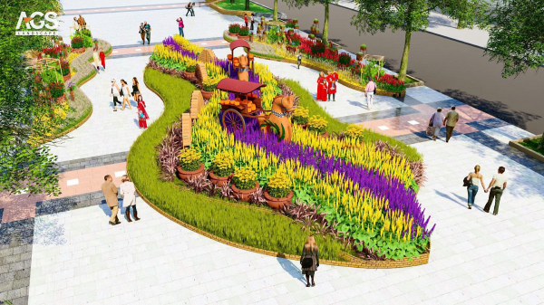 Phối cảnh 3D một phân khu của đường hoa Nguyễn Huệ Tết Bính Ngọ 2026.