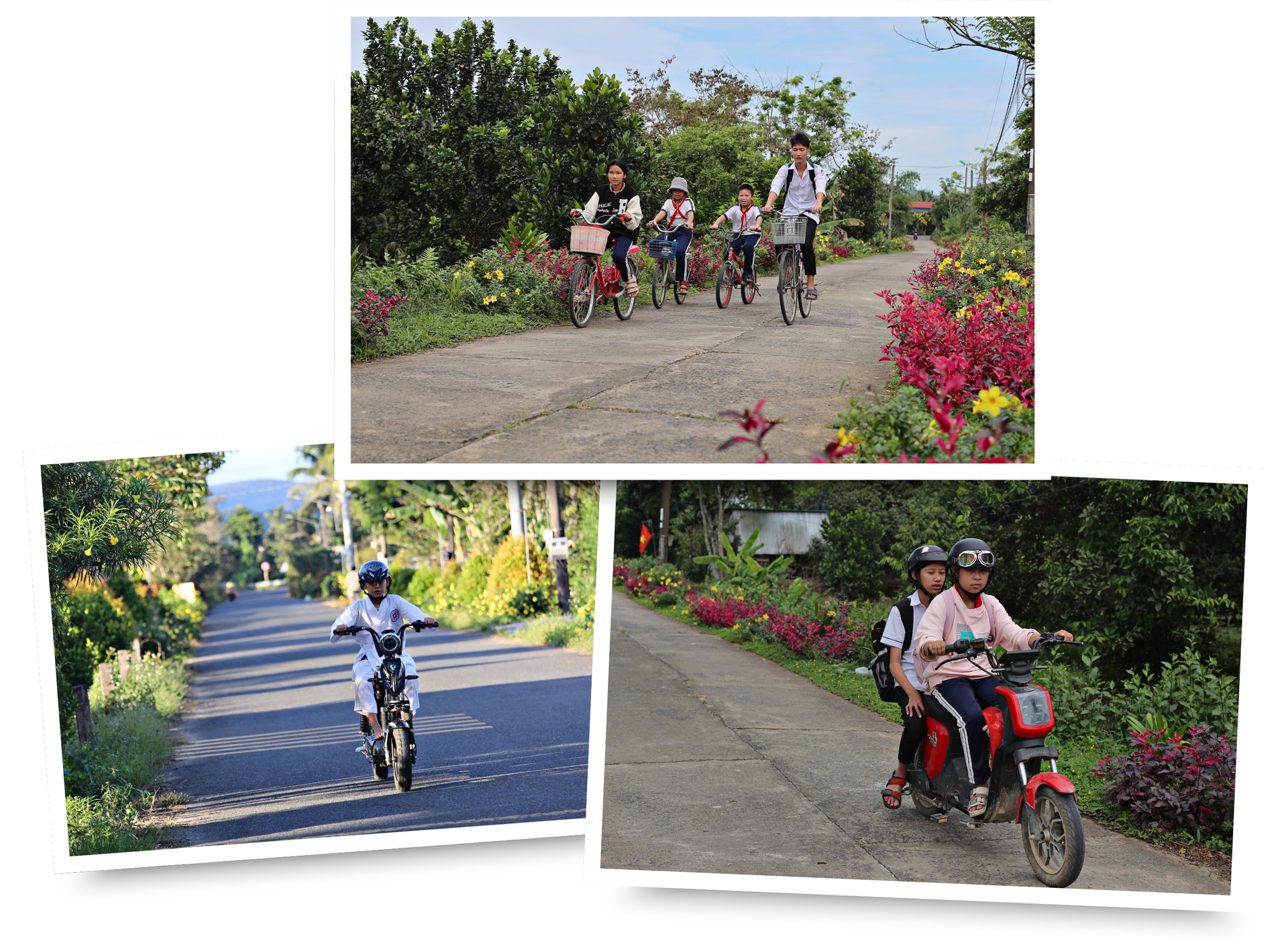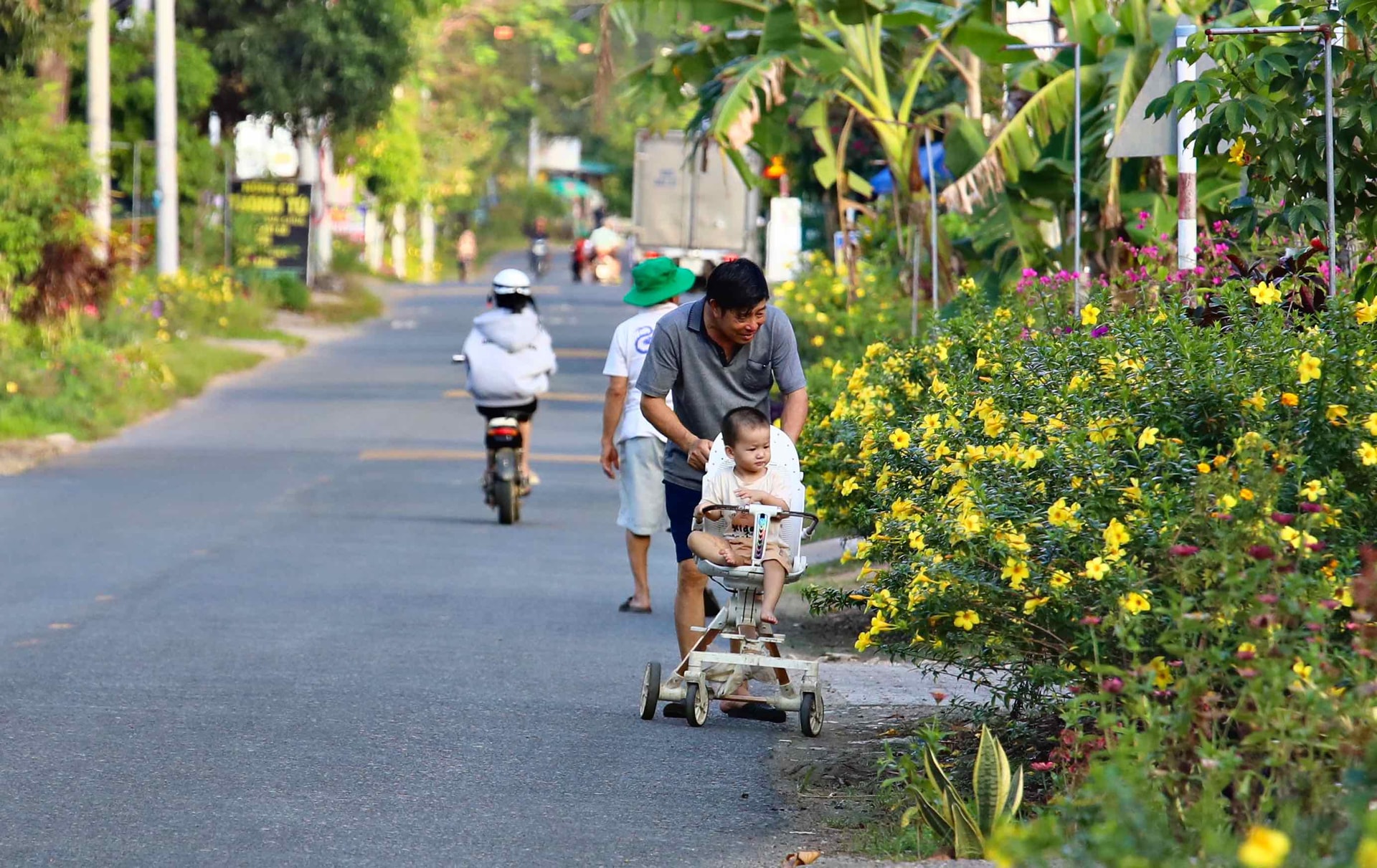 Trẻ em đi học về thường dừng lại ngắm hoa, người lớn tuổi thong thả tản bộ mỗi chiều. Những con đường không còn đơn thuần là lối đi mà trở thành không gian sinh hoạt chung, nơi gắn kết tình làng nghĩa xóm