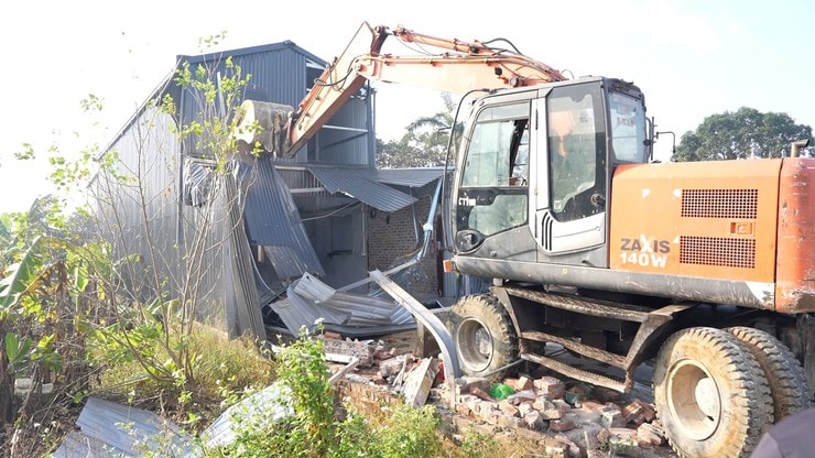 UBND xã Dương Hòa quyết liệt tổ chức cưỡng chế giải tỏa công trình vi phạm trên đất nông nghiệp. Ảnh: Phượng Nguyễn