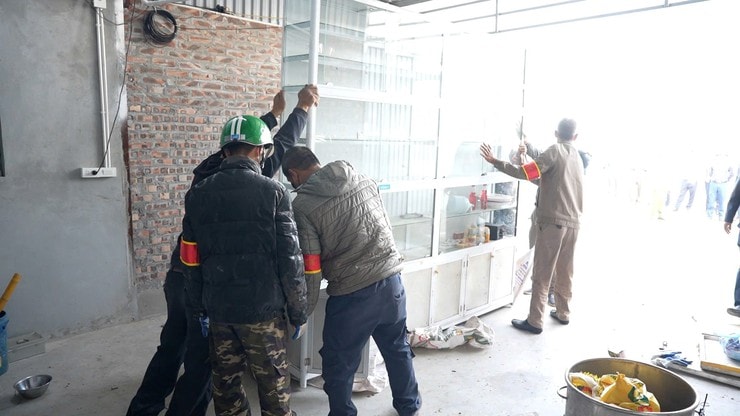 Lực lượng chức năng hỗ trợ tháo dỡ, di dời tài sản cho người dân. Ảnh: Phượng Tùng