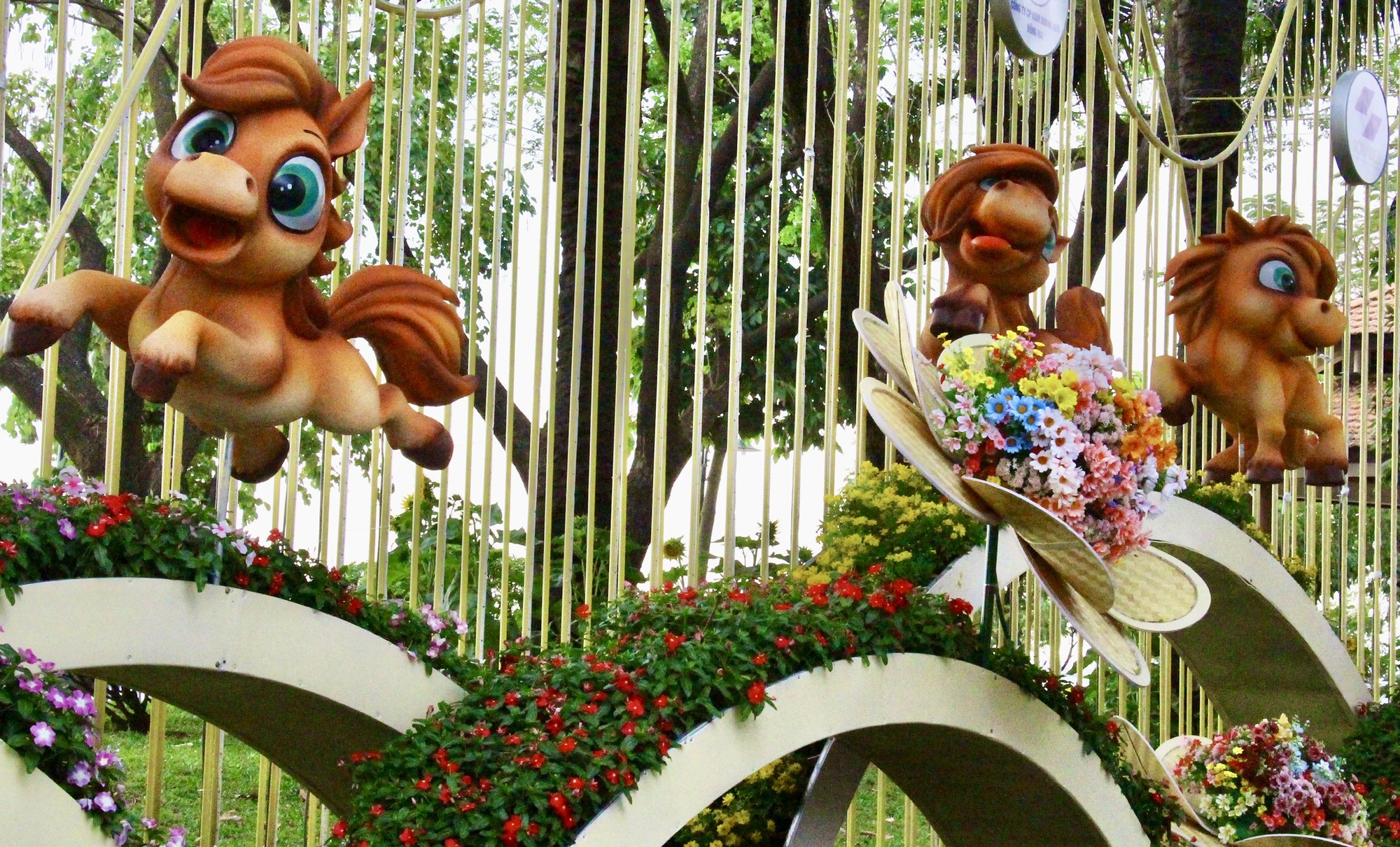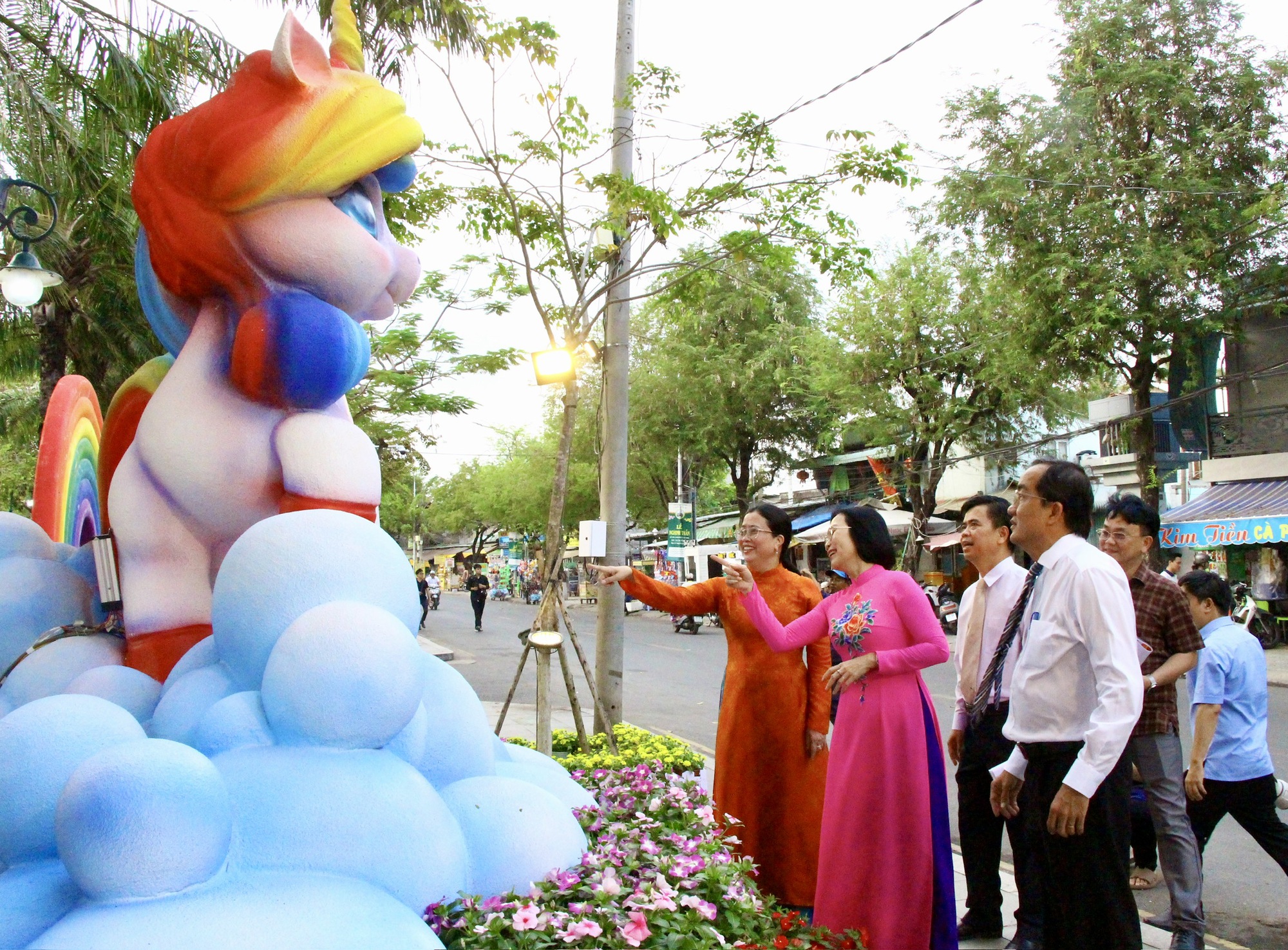 Mỗi khu vực được dàn dựng công phu, kết hợp nghệ thuật sắp đặt hoa, tiểu cảnh xuân và ánh sáng hiện đại, tạo nên một tổng thể hài hòa giữa truyền thống và sáng tạo. Điểm nhấn là cụm linh vật ngựa đặt tại vị trí trung tâm, thu hút đông đảo người dân và du khách check-in trong ngày khai mạc.